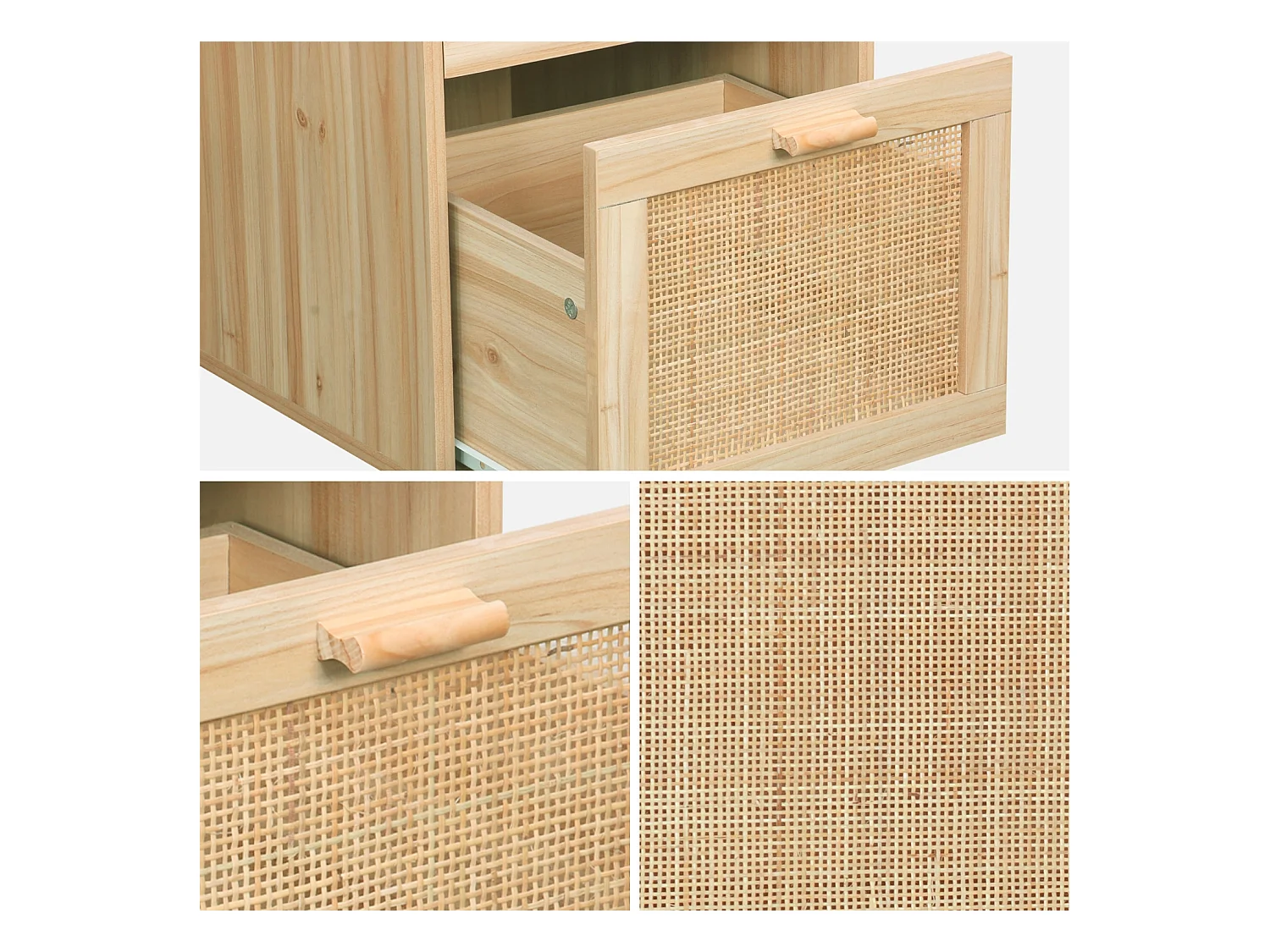 Bureau décor bois et cannage - Camargue - 120cm. 2 tiroirs