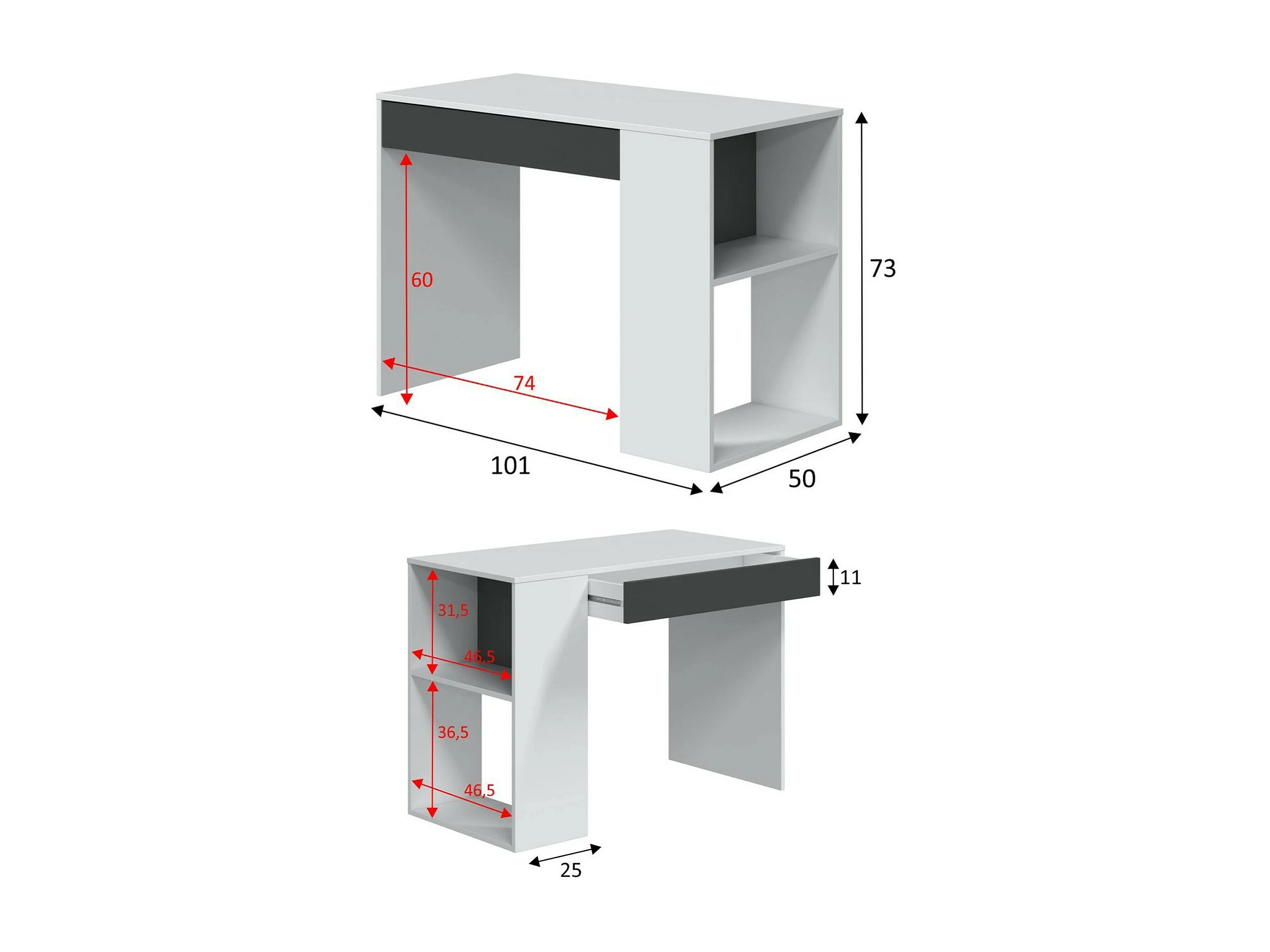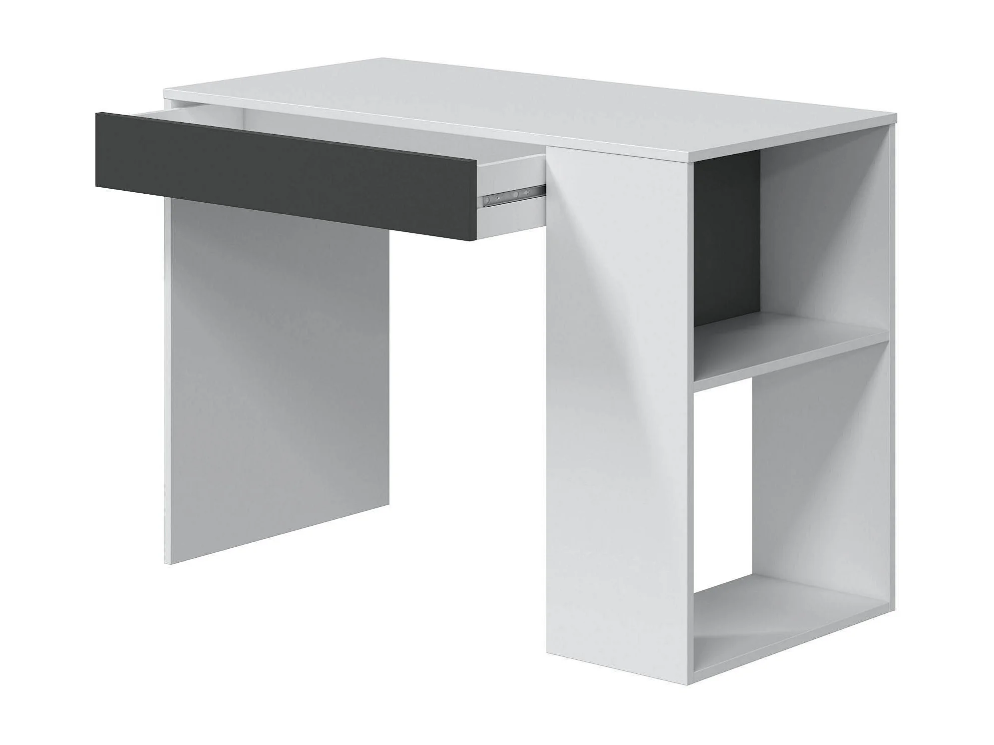 Bureau Boise, Bureau multifonction réversible avec tiroir, Table d'étude ou de bureau pour PC, 101x50h73 cm, Blanc et Anthracite
