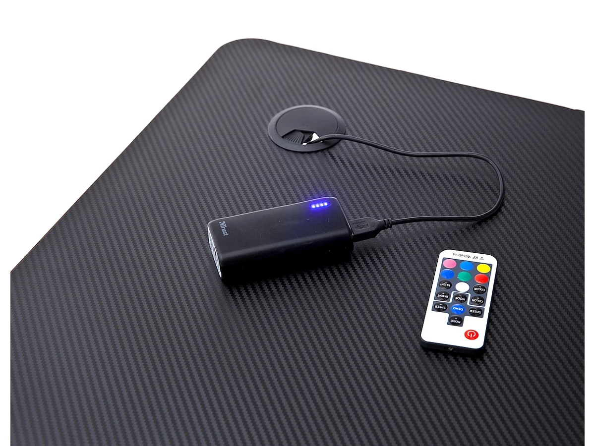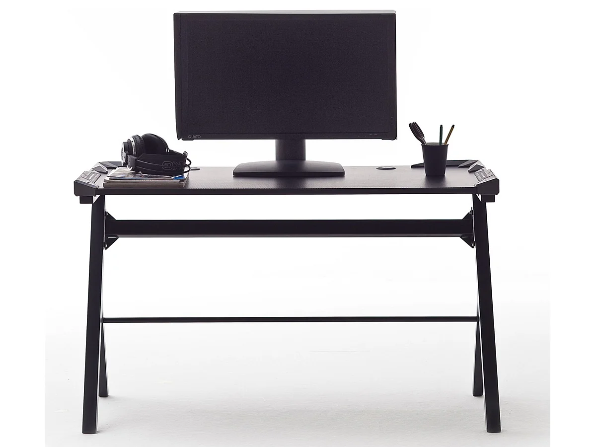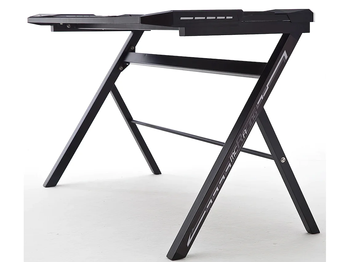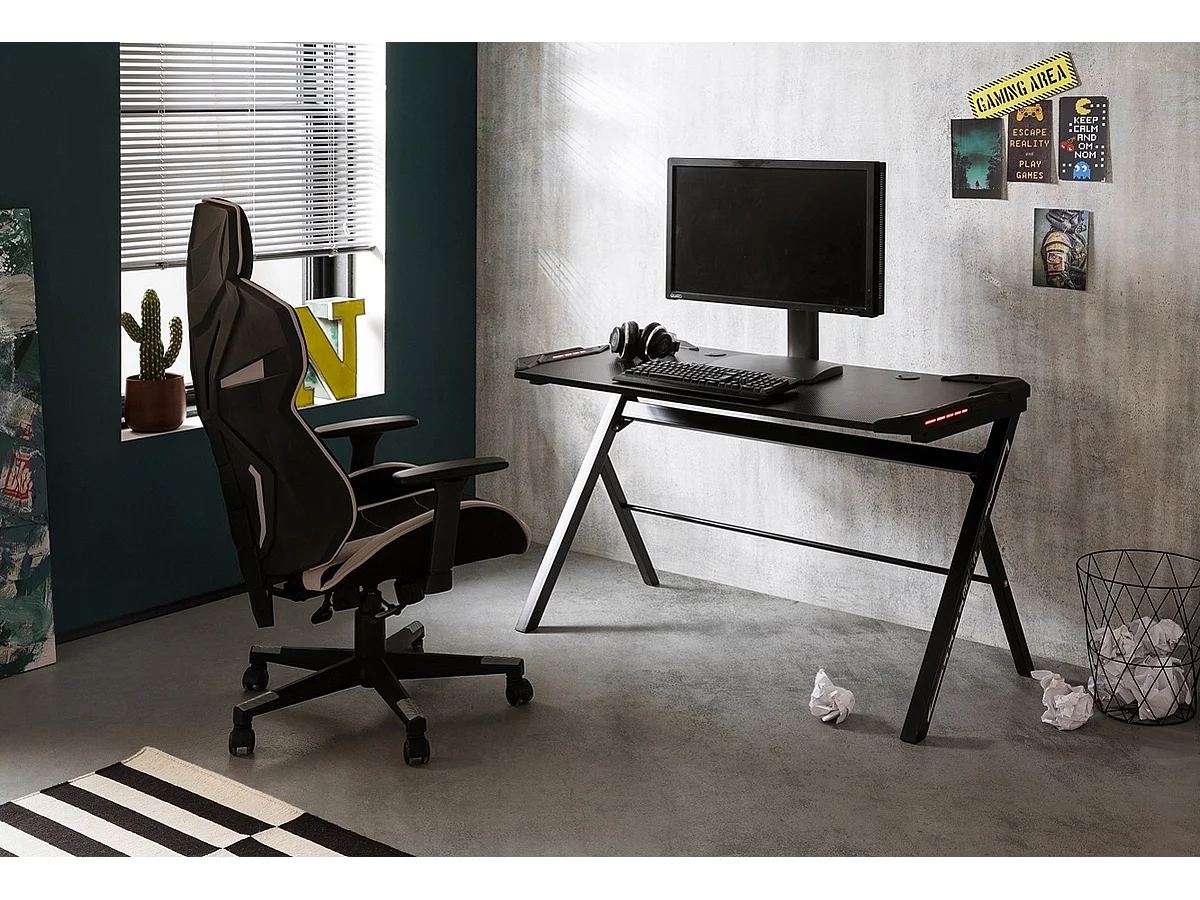 Bureau d'ordinateur avec LED et couvercle coloris noir - Longueur 120 x Hauteur 73 x Profondeur 60 cm