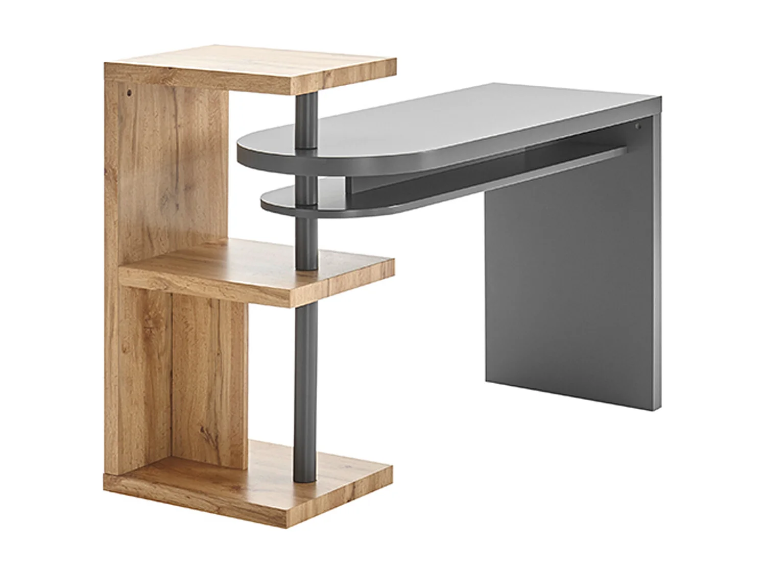 Bureau d'ordinateur pivotant coloris gris et chêne - Longueur 145 x Hauteur 94 x Profondeur 50 cm