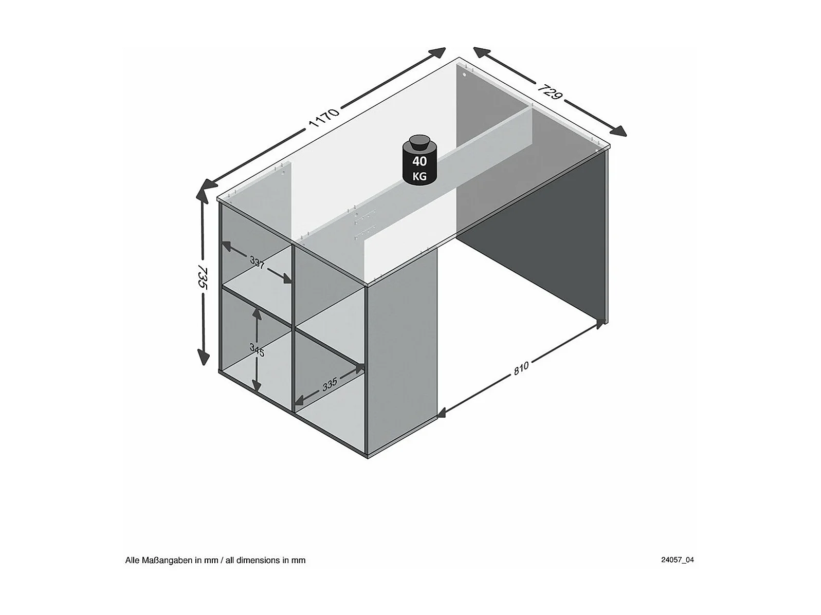 Bureau Droit avec Étagères Latérales L117cm - Gent