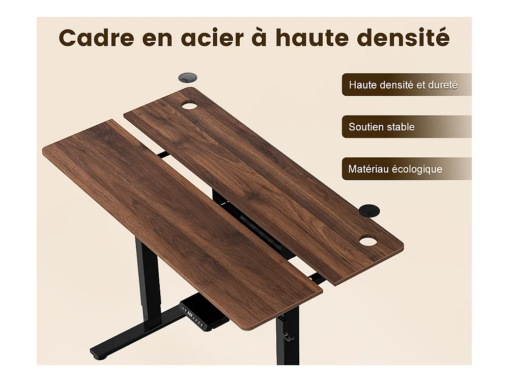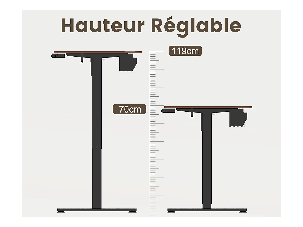Bureau électrique assis-debout 120x60 cm – Hauteur réglable – Mémoire & anti-collision – Ports USB-A & Type-C – Finition bois noyer