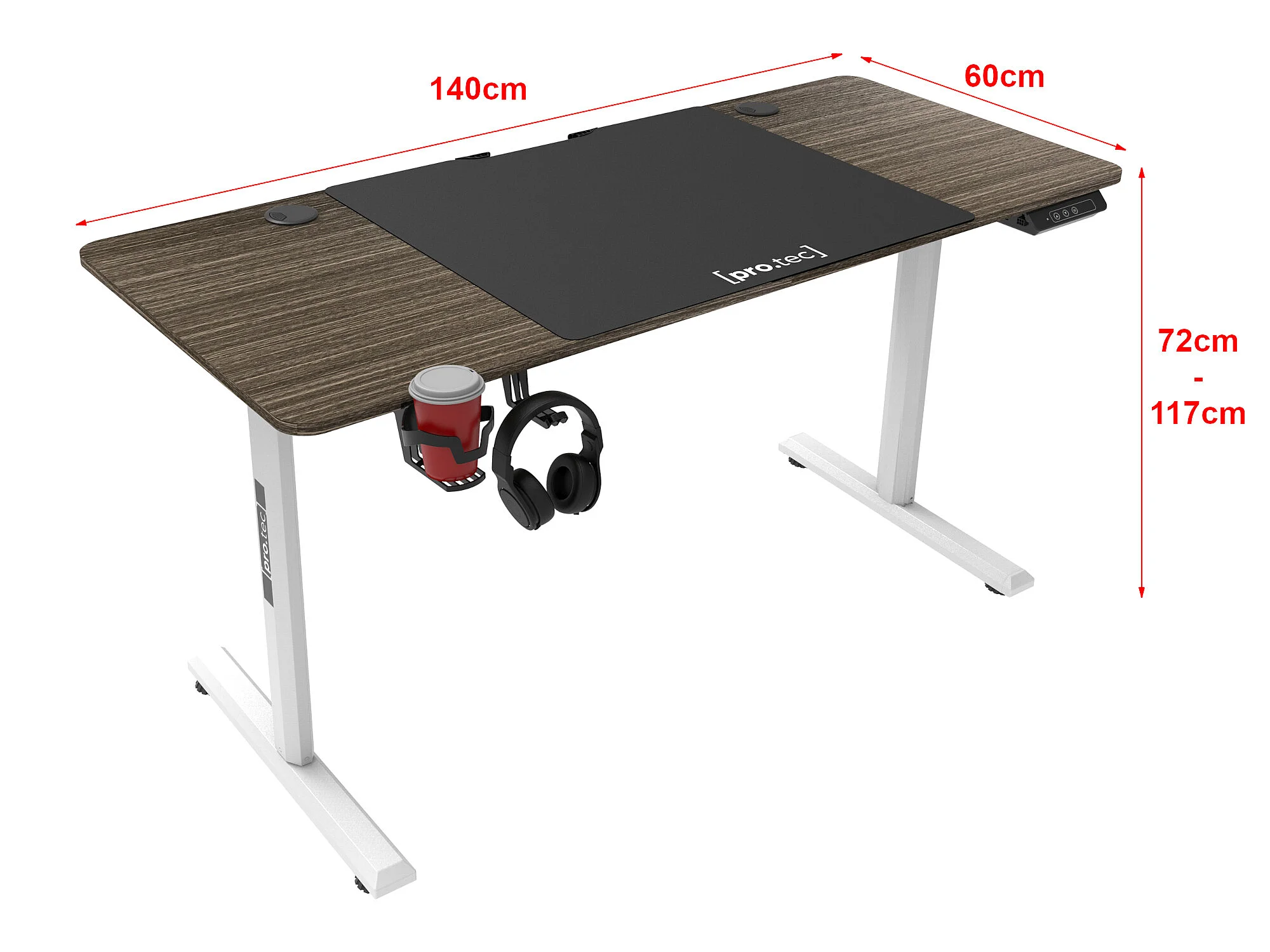 Bureau électrique Hayward à hauteur réglable 140 x 60 x 72 - 117 cm effet bois foncé [pro.tec]