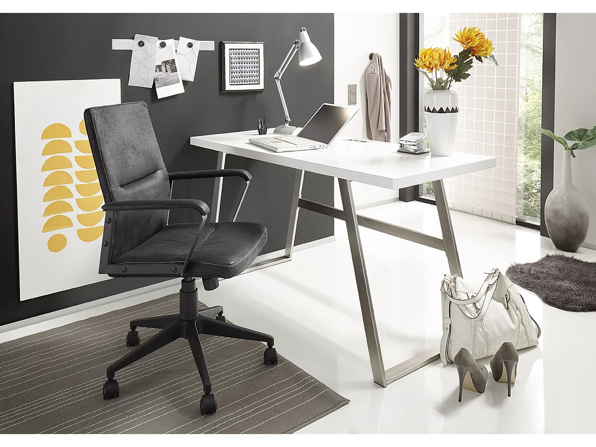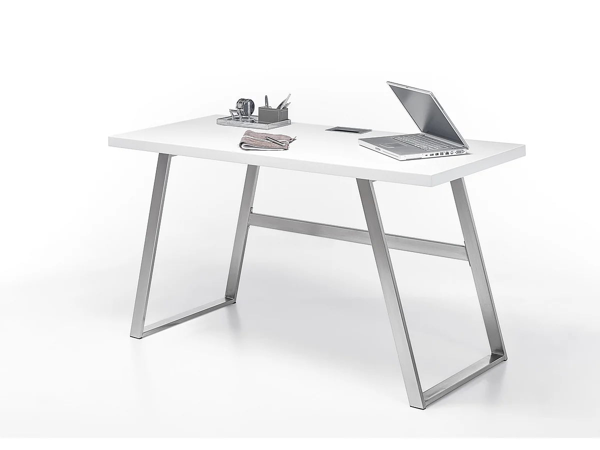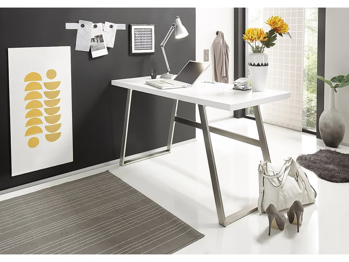 Bureau en laqué blanc mat avec piètement acier - L140 x H75 x P60 cm