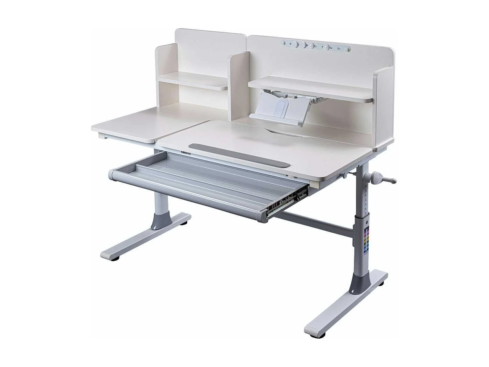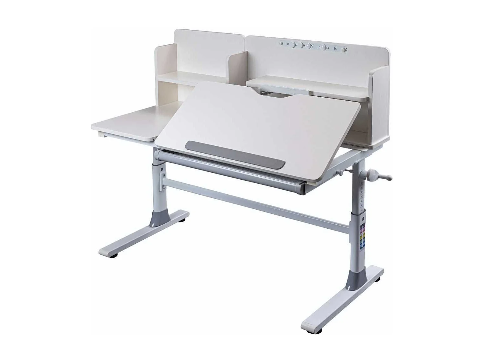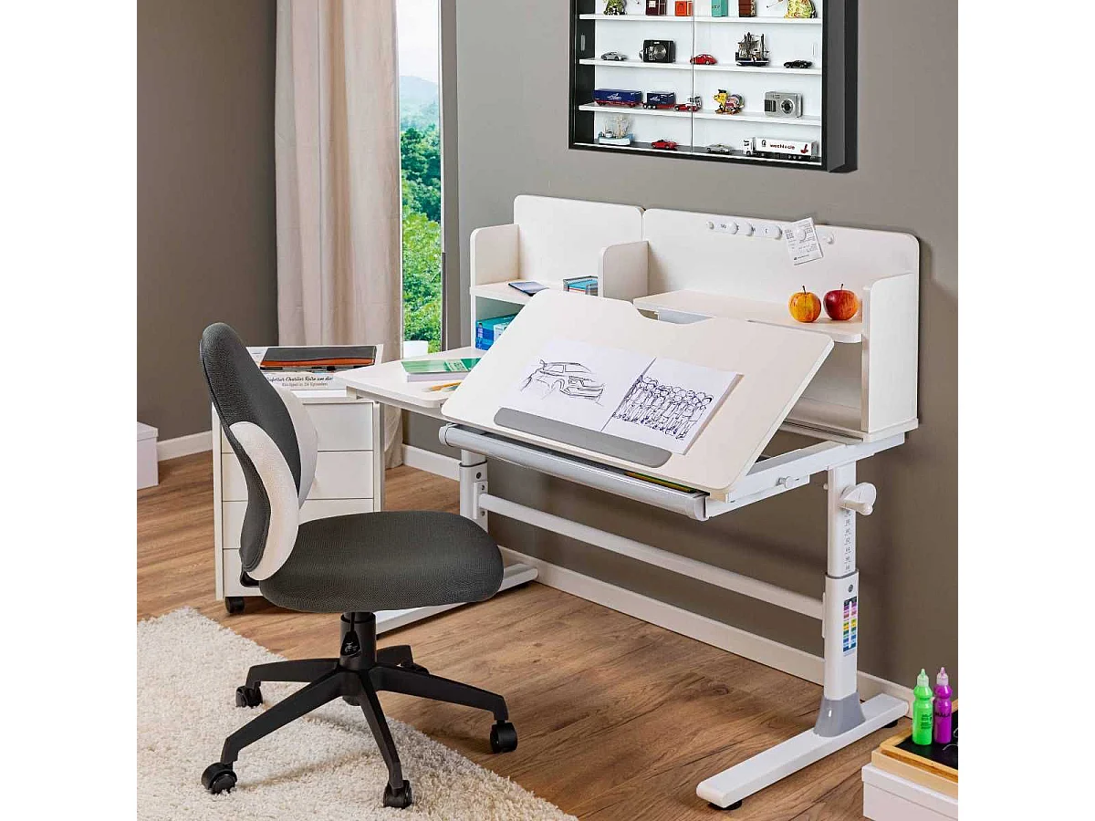 Bureau enfant avec étagères technique réglable en hauteur blanc en MDF et piètement en métal - TECHNIK
