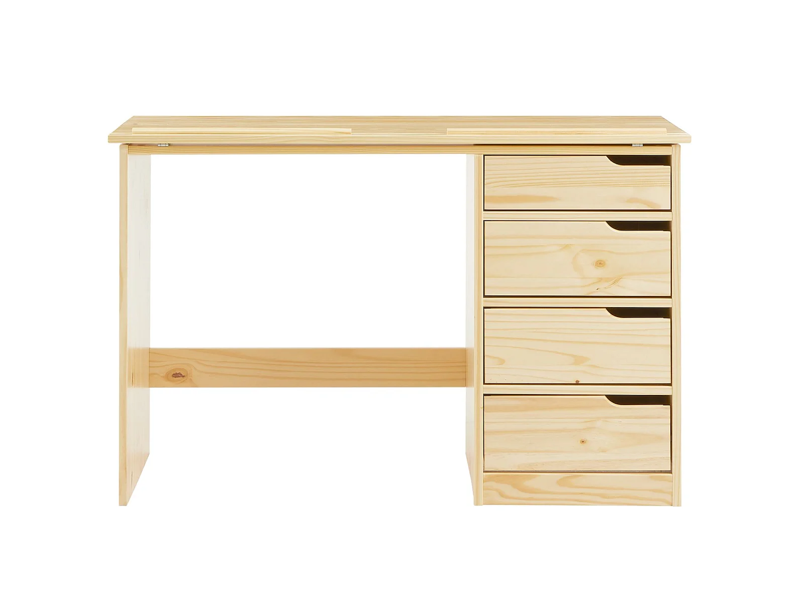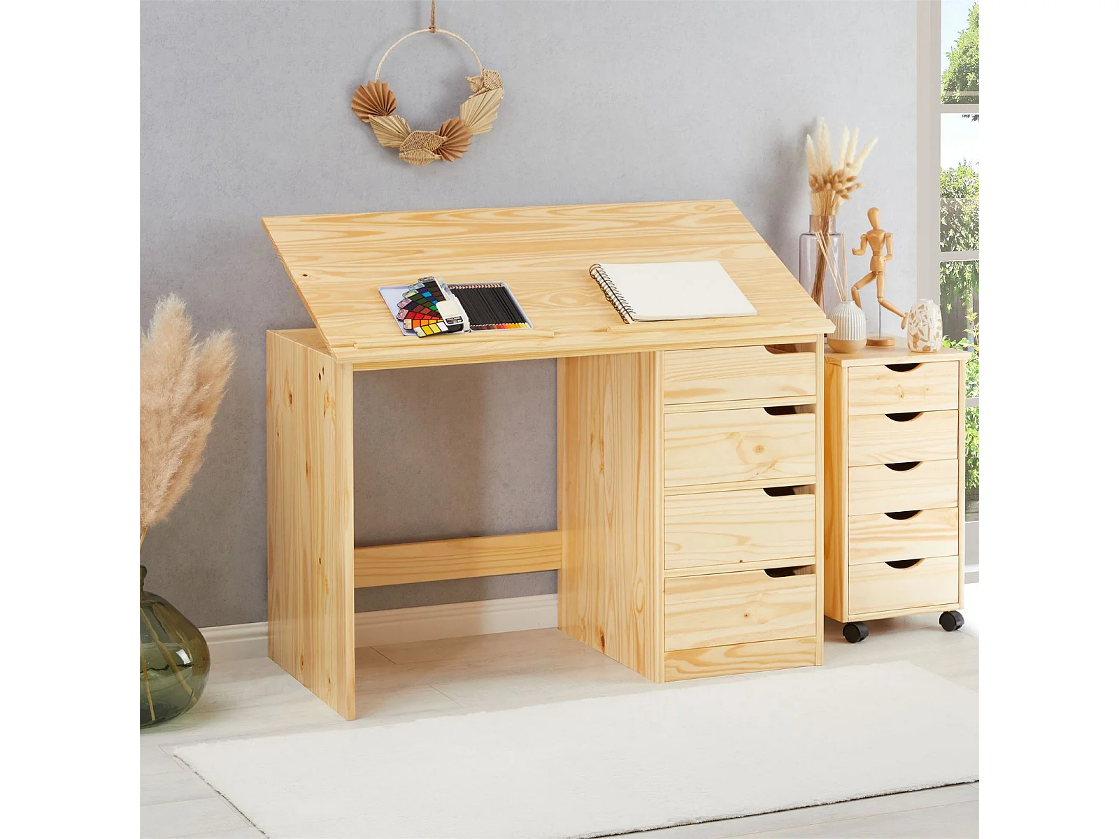 Bureau enfant écolier junior EMMA pupitre inclinable avec 4 tiroirs en pin massif naturel