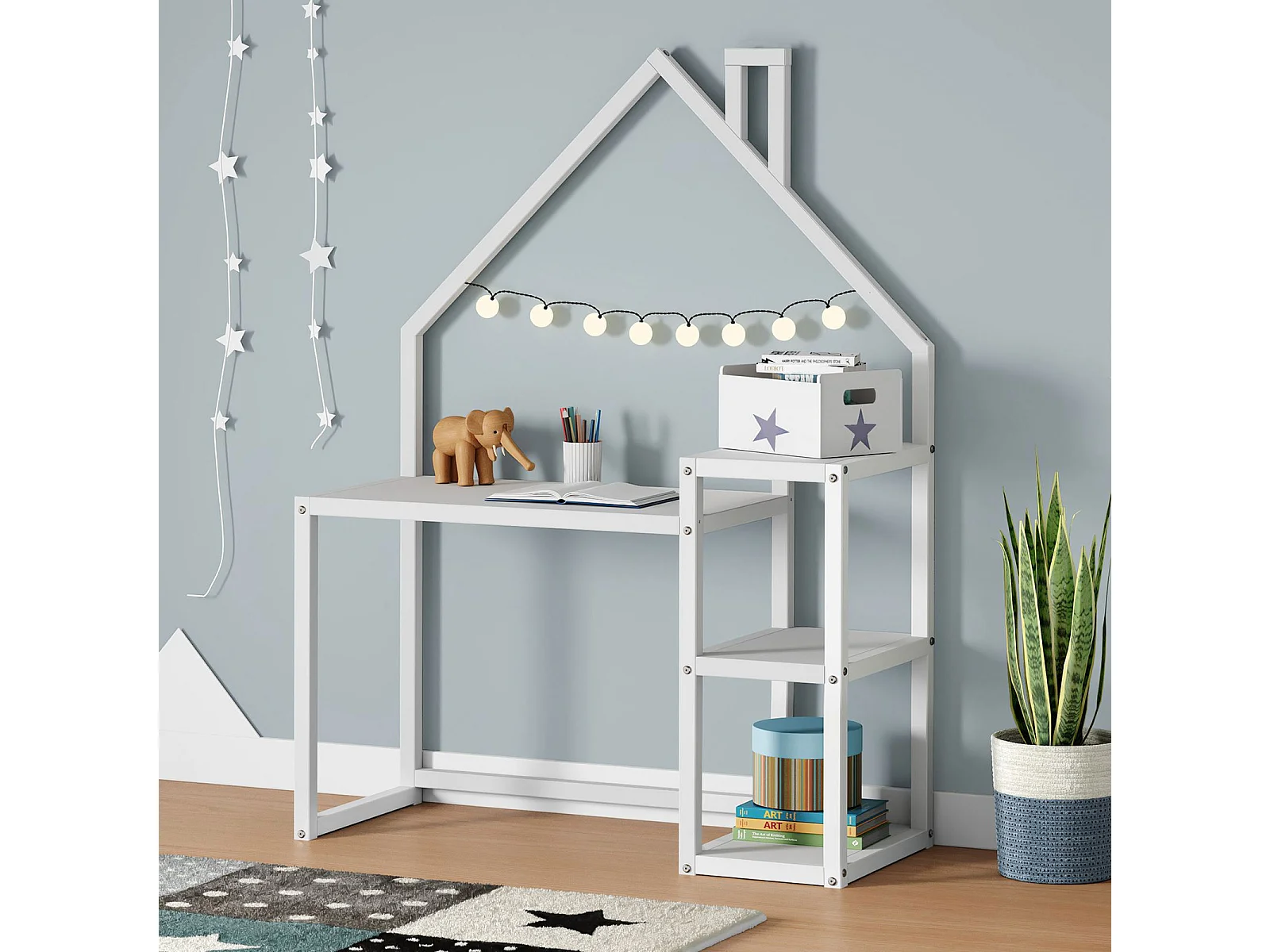 Bureau enfant NIVIA en forme de maison en pin massif, bureau chambre enfant bois, en pin massif blanc