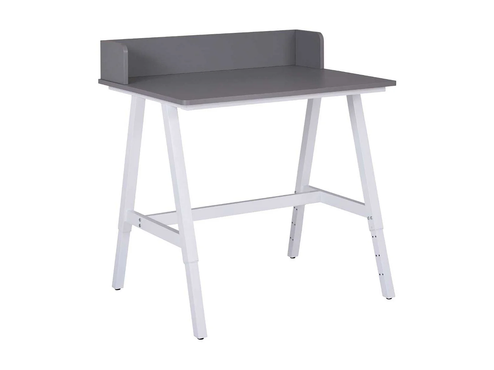 Bureau enfant réglable en hauteur en MDF plateau gris et piètement métal laqué blanc - ELION