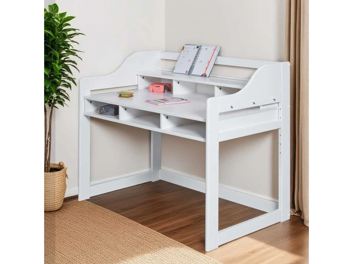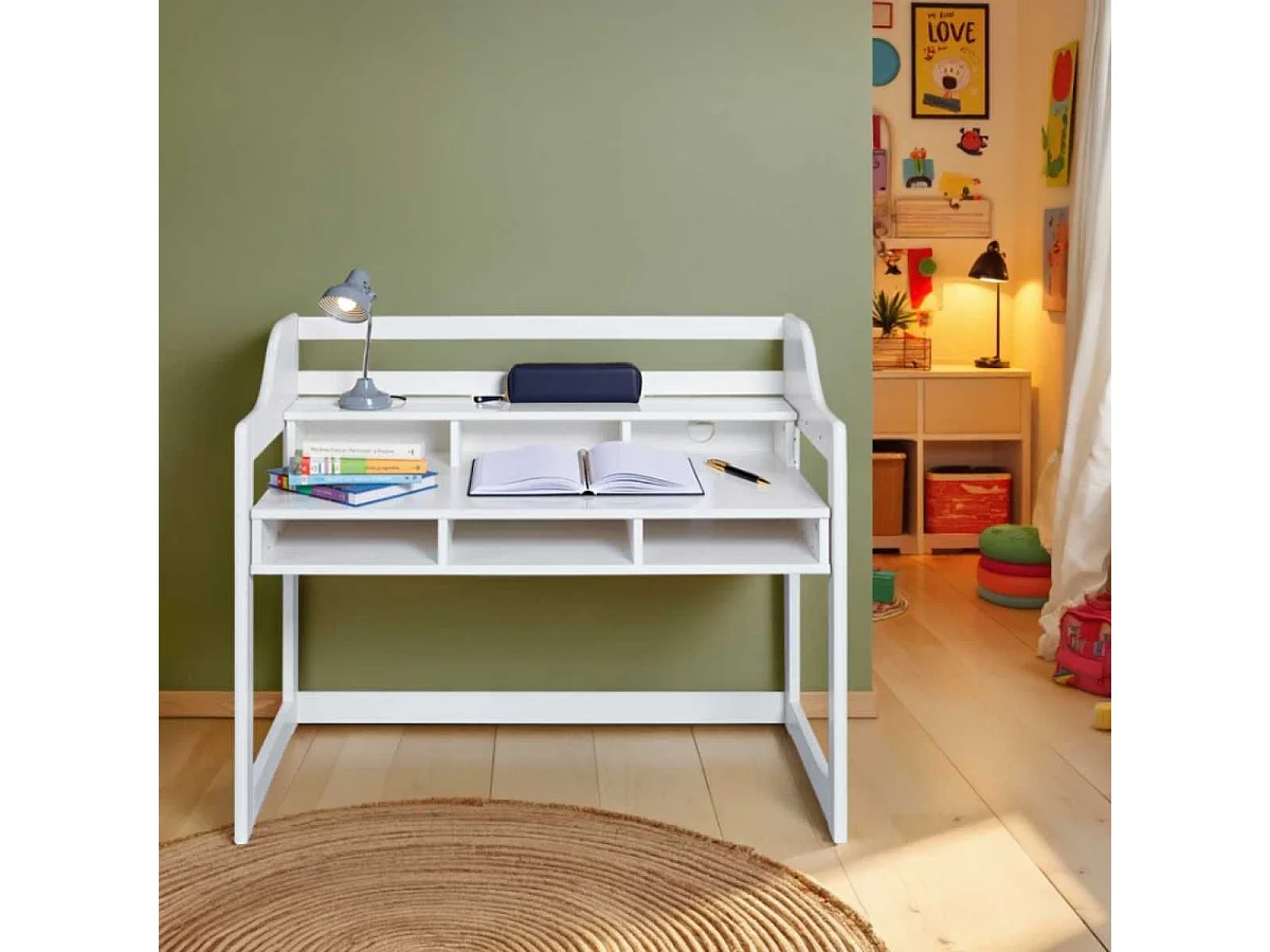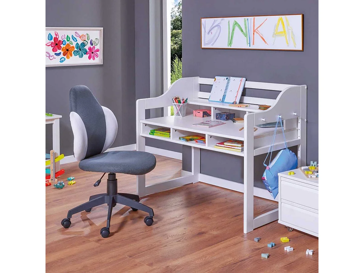 Bureau enfant réglable en hauteur en pin massif laqué blanc - GAEL