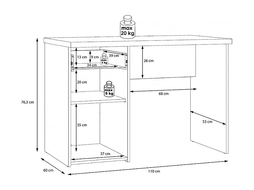 Bureau enfant 110 cm décor bois vintage et béton gris - BUCKY