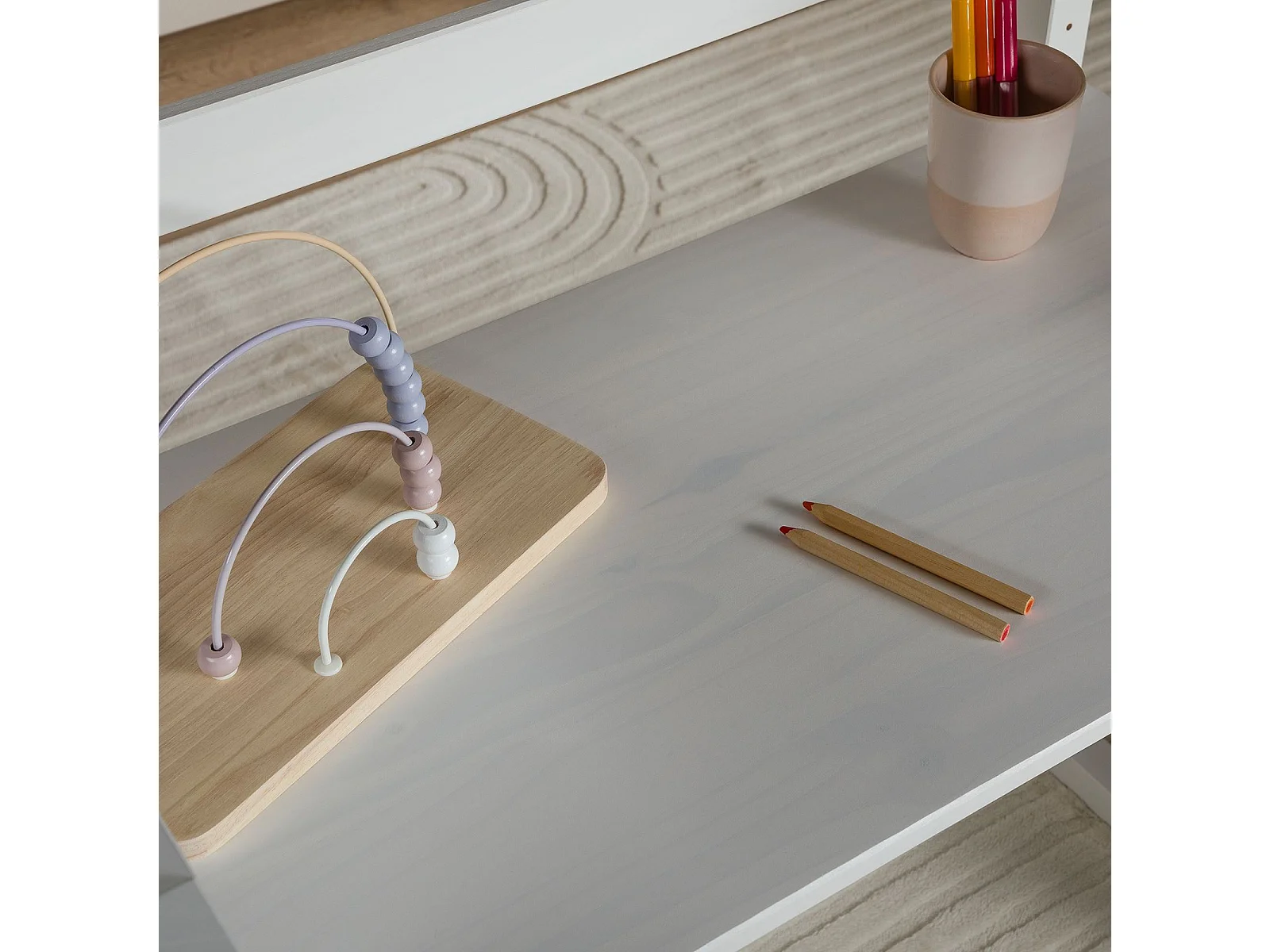 Bureau cabane enfant réglable LIA Montessori en bois massif blanc, plateau évolutif en hauteur qui s'adapte à la croissance