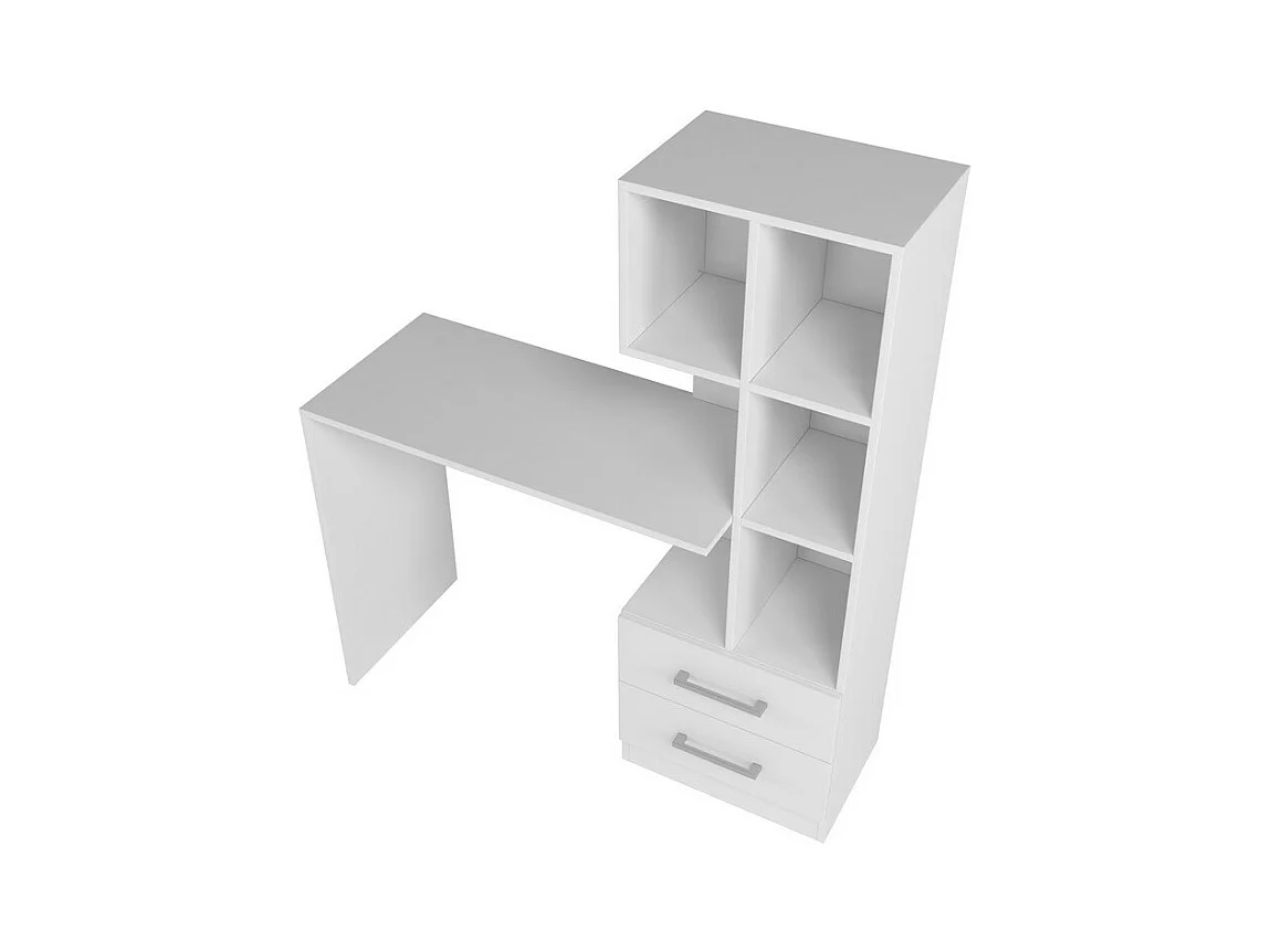 Bureau et Bibliothèque Intégrée 2 Tiroirs 6 Niches Blancs L 108.3 H 130 P 40 cm