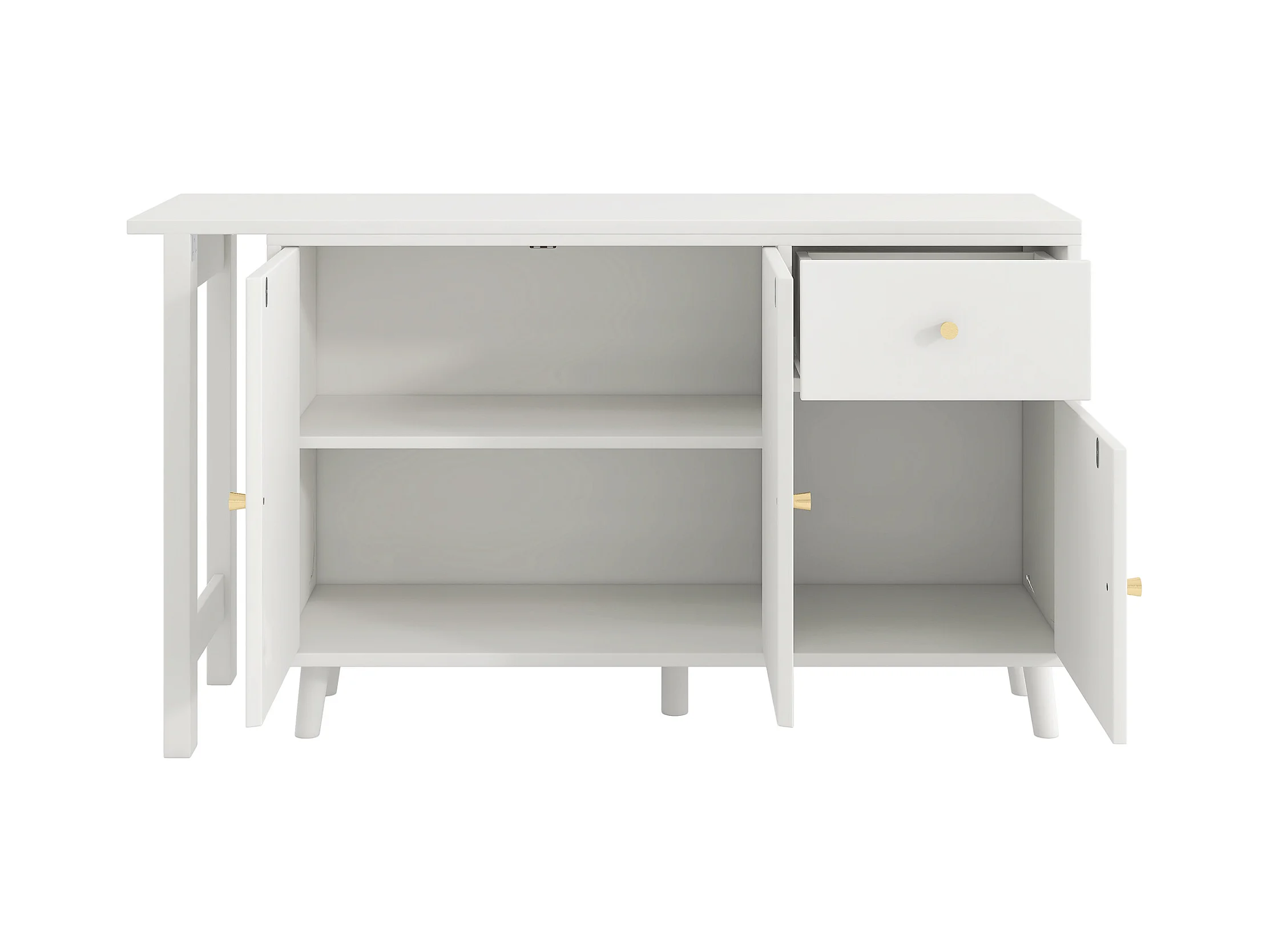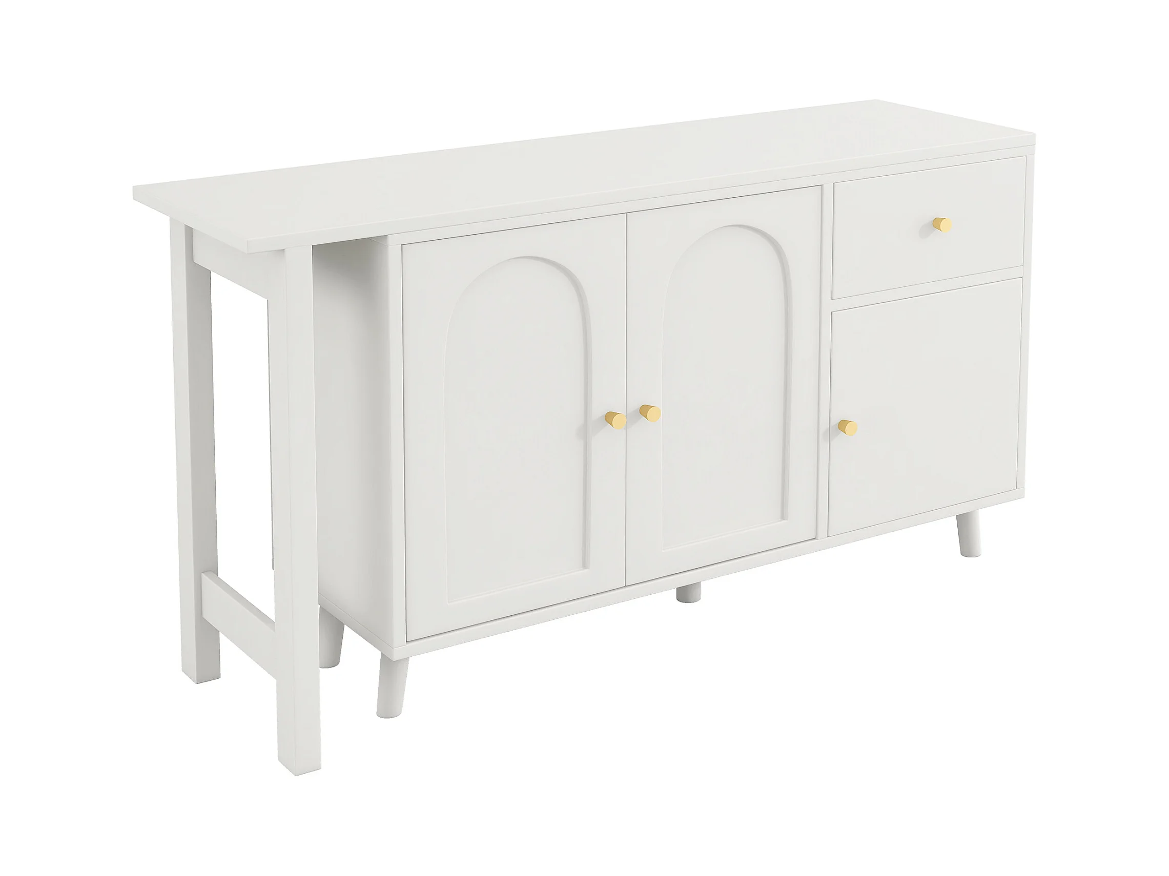 Bureau et buffet 2 en 1 - 120 x 40 x 74.5 cm - rotatif à 360°- avec 3 portes + 1 tiroir - aggloméré - blanc