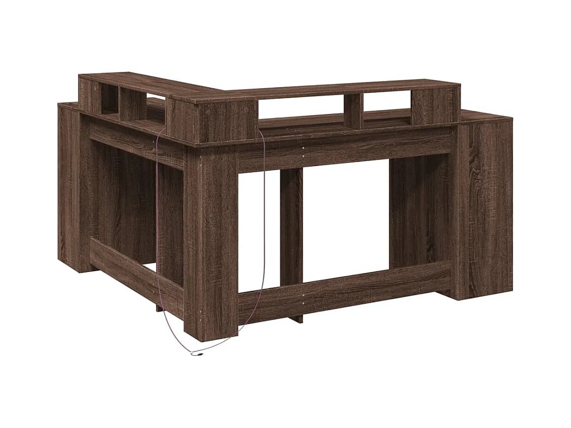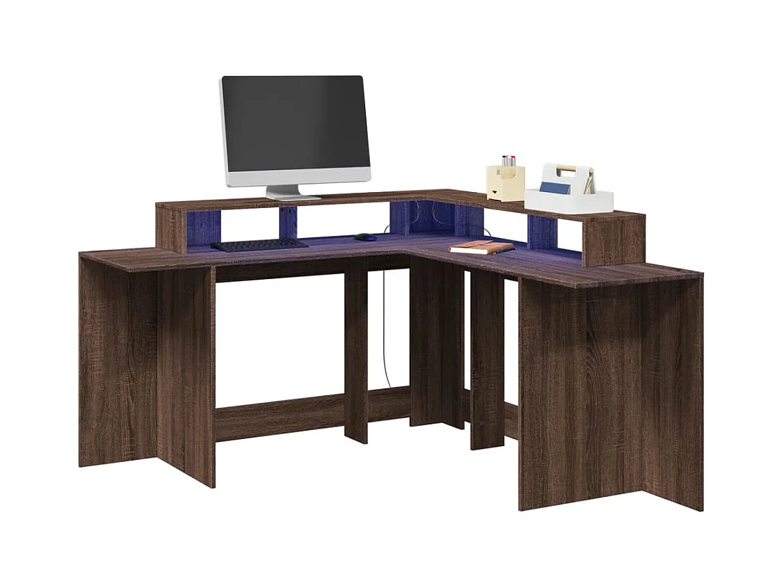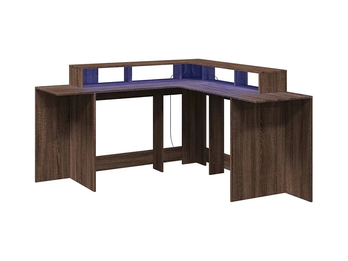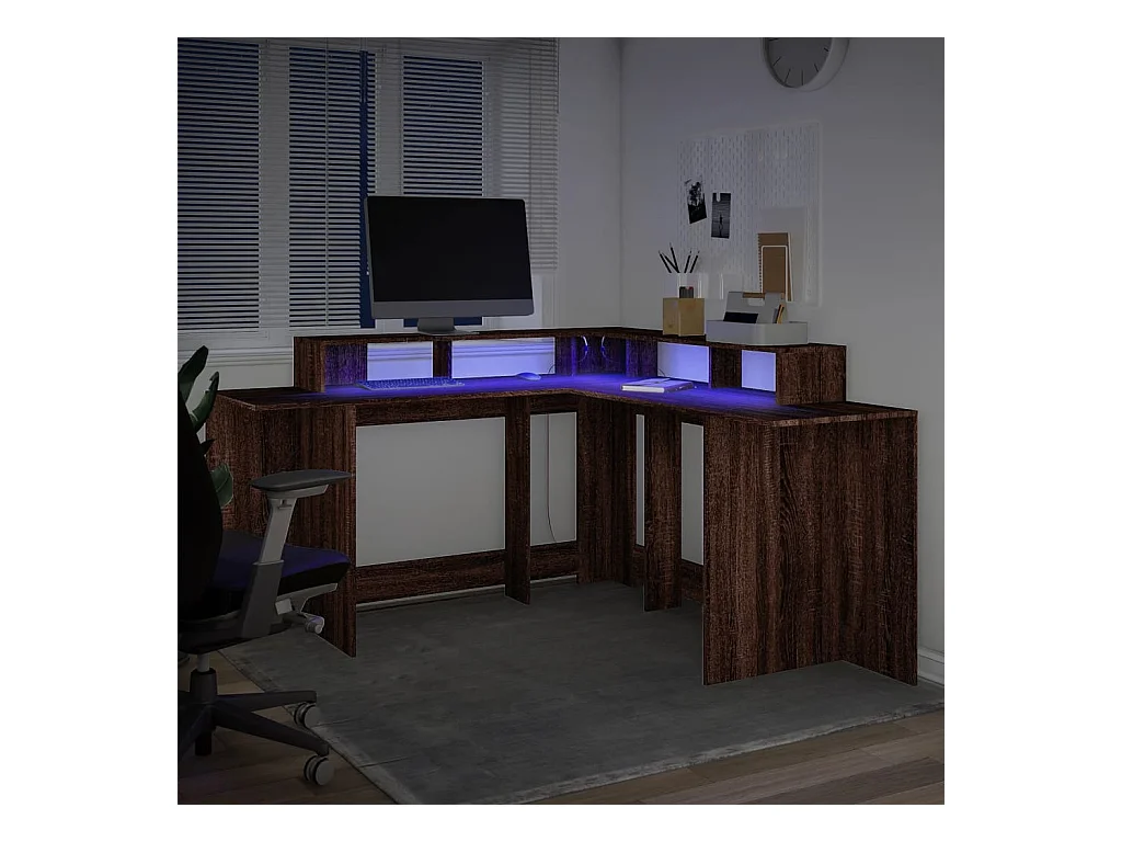 Bureau et lumières LED chêne marron bois d'ingénierie