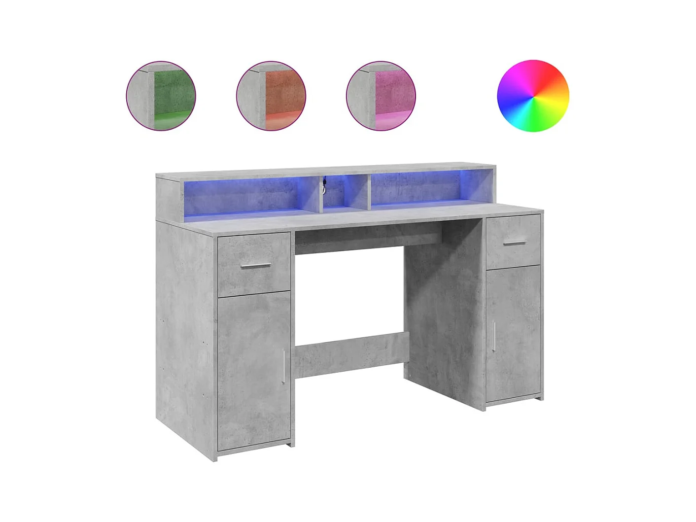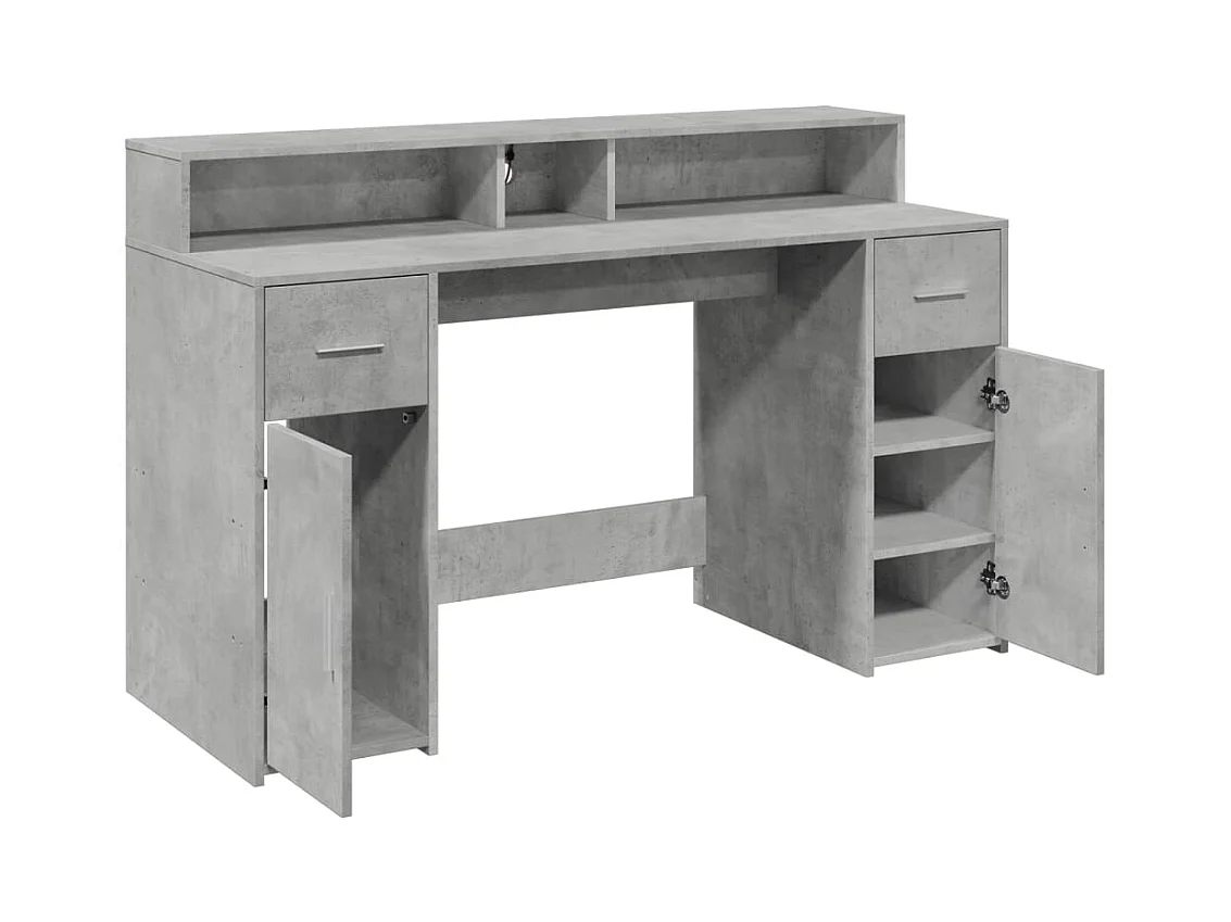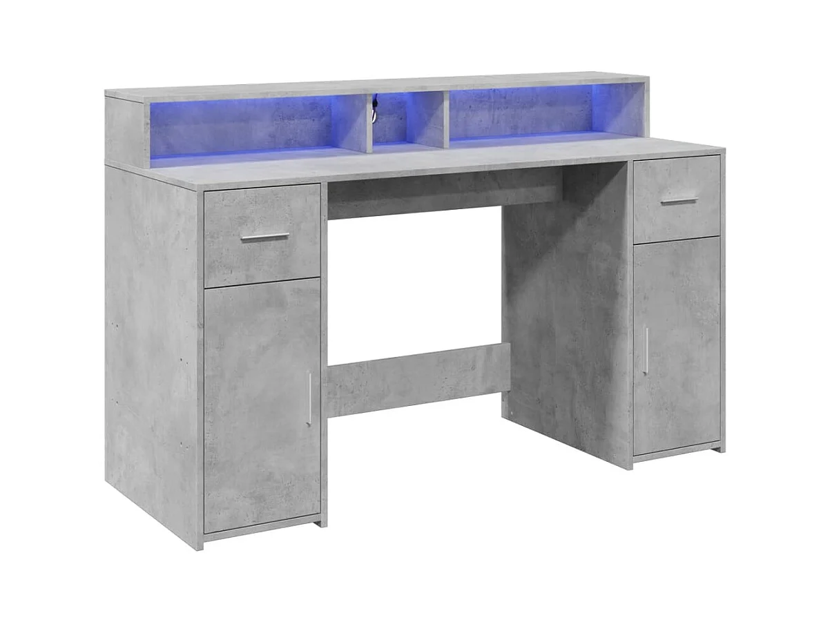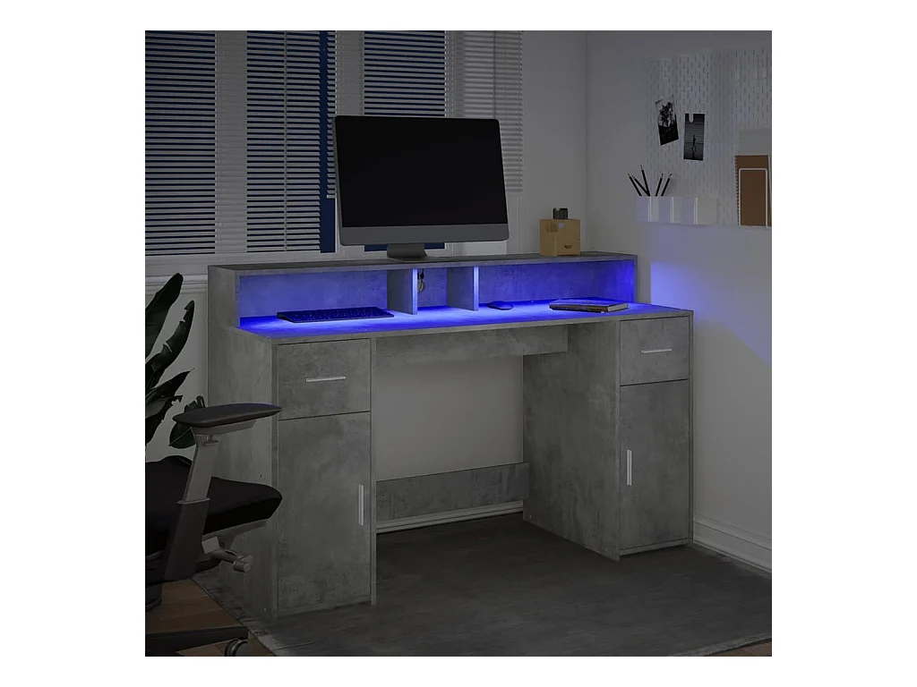 Bureau et lumières LED gris béton 140x55x91cm bois d'ingénierie