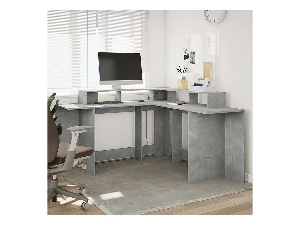 Bureau et lumières LED gris béton 152x152x91cm bois ingénierie