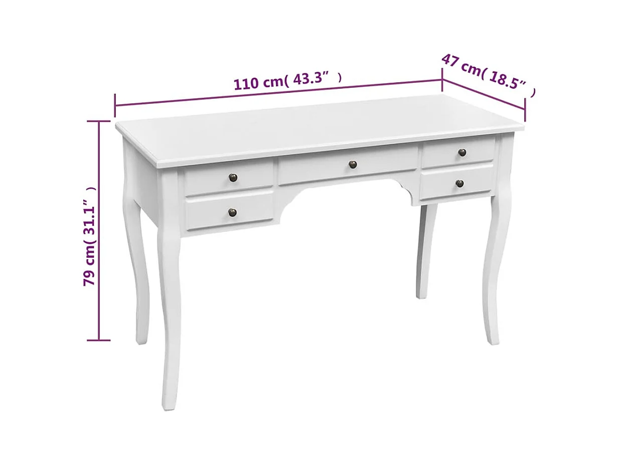 Bureau français en bois avec pieds courbés et 5 tiroirs FR57066