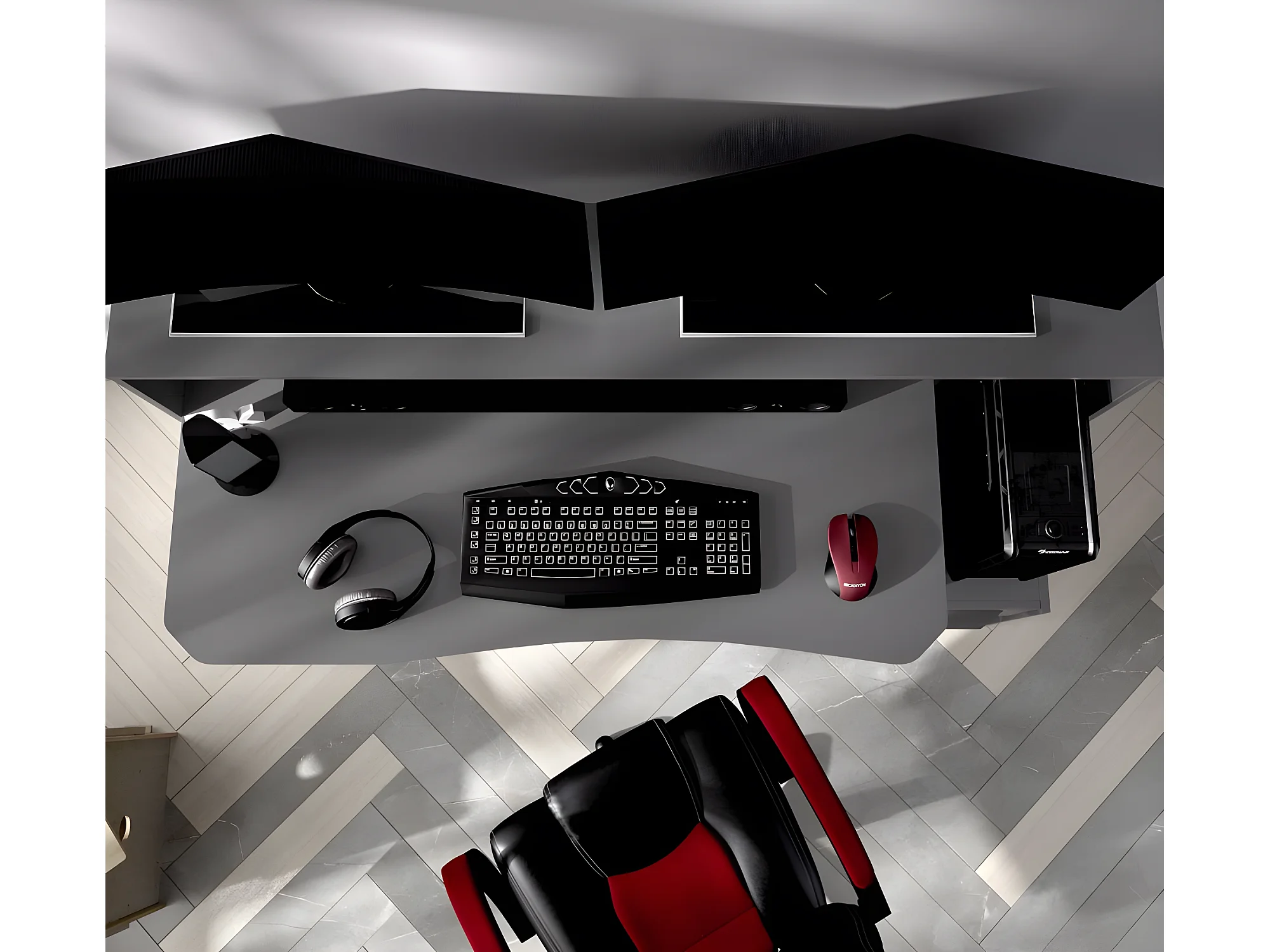 Bureau Gaming Table de jeu coloris graphite - Longueur 153,5 x Profondeur 62-68.5 x Hauteur 84.2-97 cm