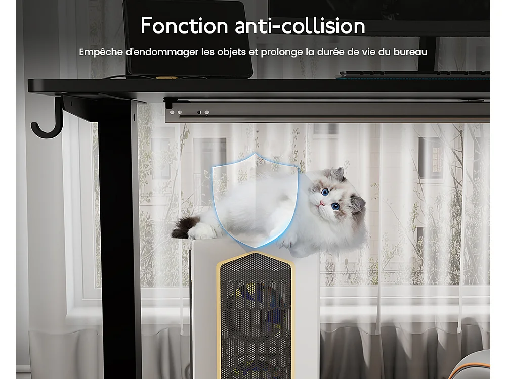 Bureau HOMAVO électrique réglable 110x60 cm – Fonction mémoire & anti-collision – Idéal télétravail – Coloris noir