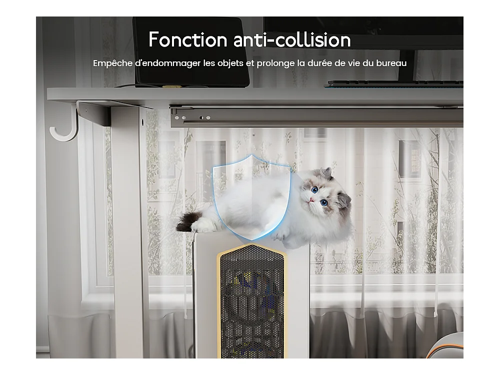 Bureau HOMAVO électrique réglable 140x60 cm – Fonction mémoire & anti-collision – Idéal télétravail – Coloris blanc