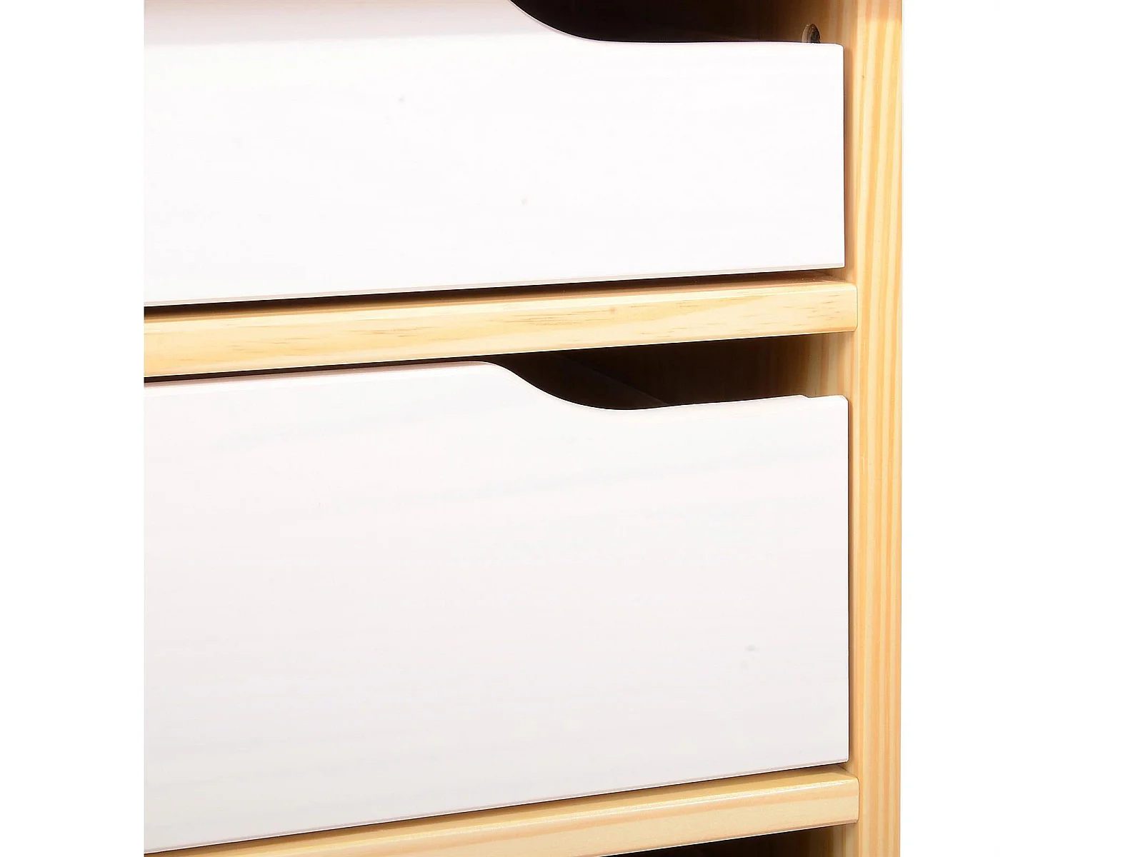 Bureau HUGO avec rangement 5 tiroirs style scandinave en pin massif vernis naturel et lasuré blanc