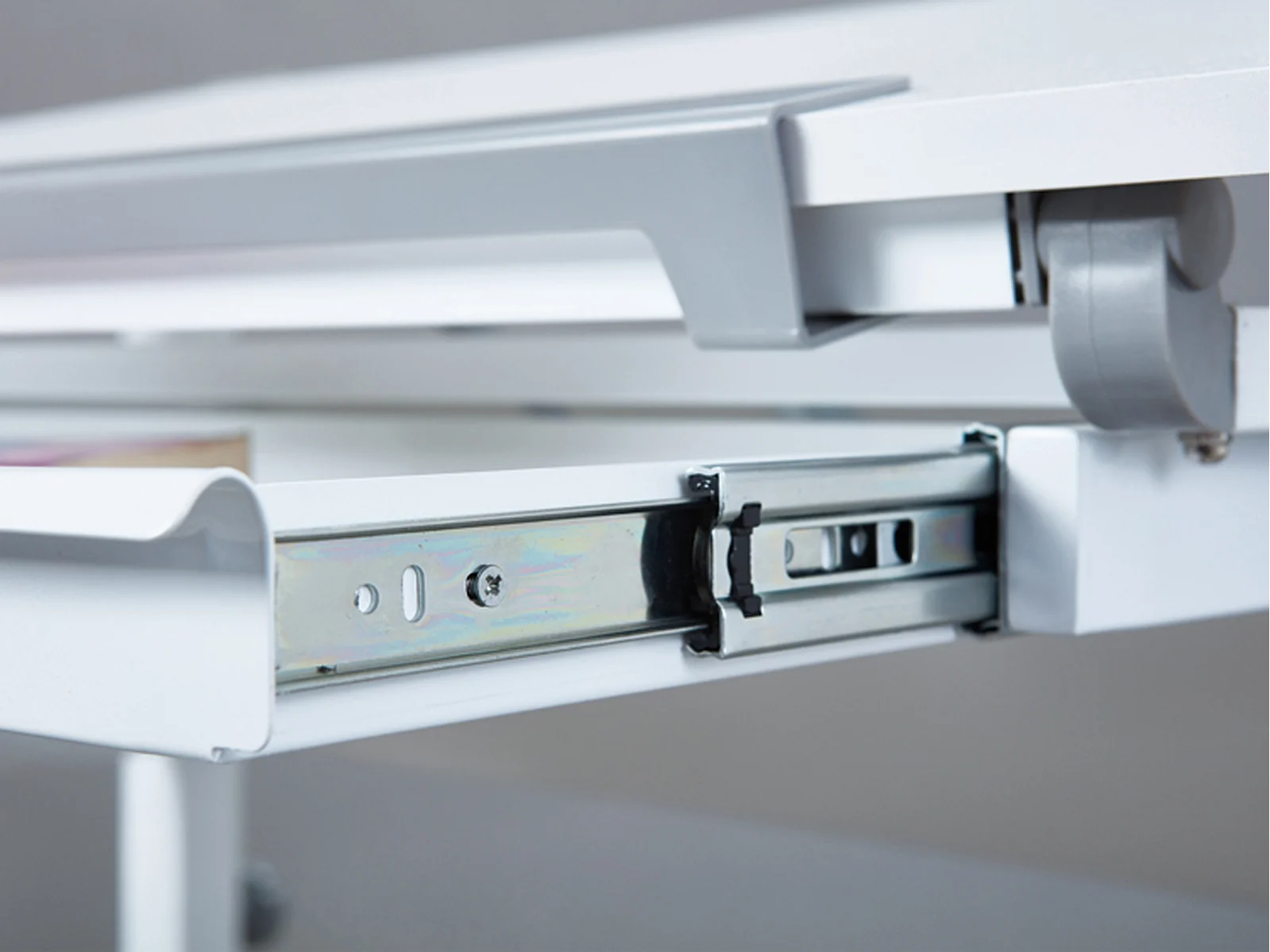 Bureau inclinable 1 tiroir bois laqué blanc et gris - Dim : L 110 x H 55-78 x P 68 cm
