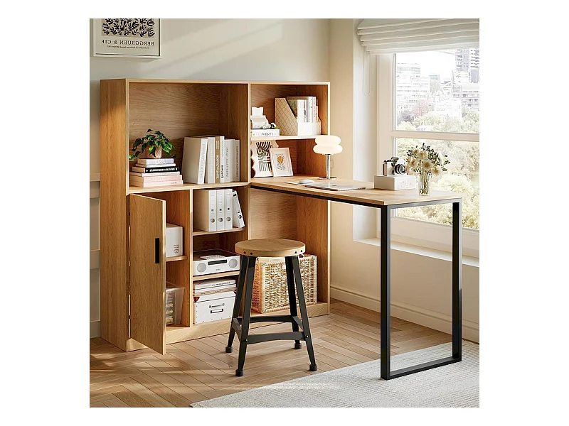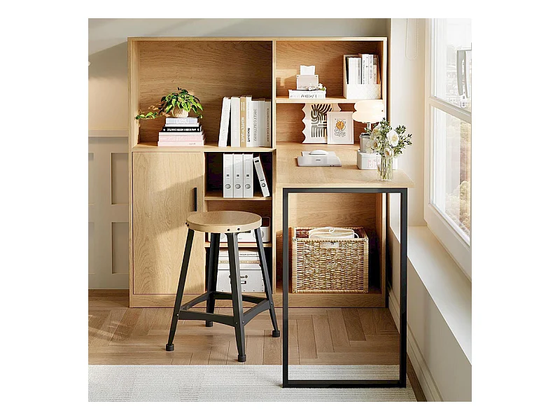 Bureau informatique avec rangement - 1 porte et 7 niches - pieds en fer - MDF - 120x50x120cm