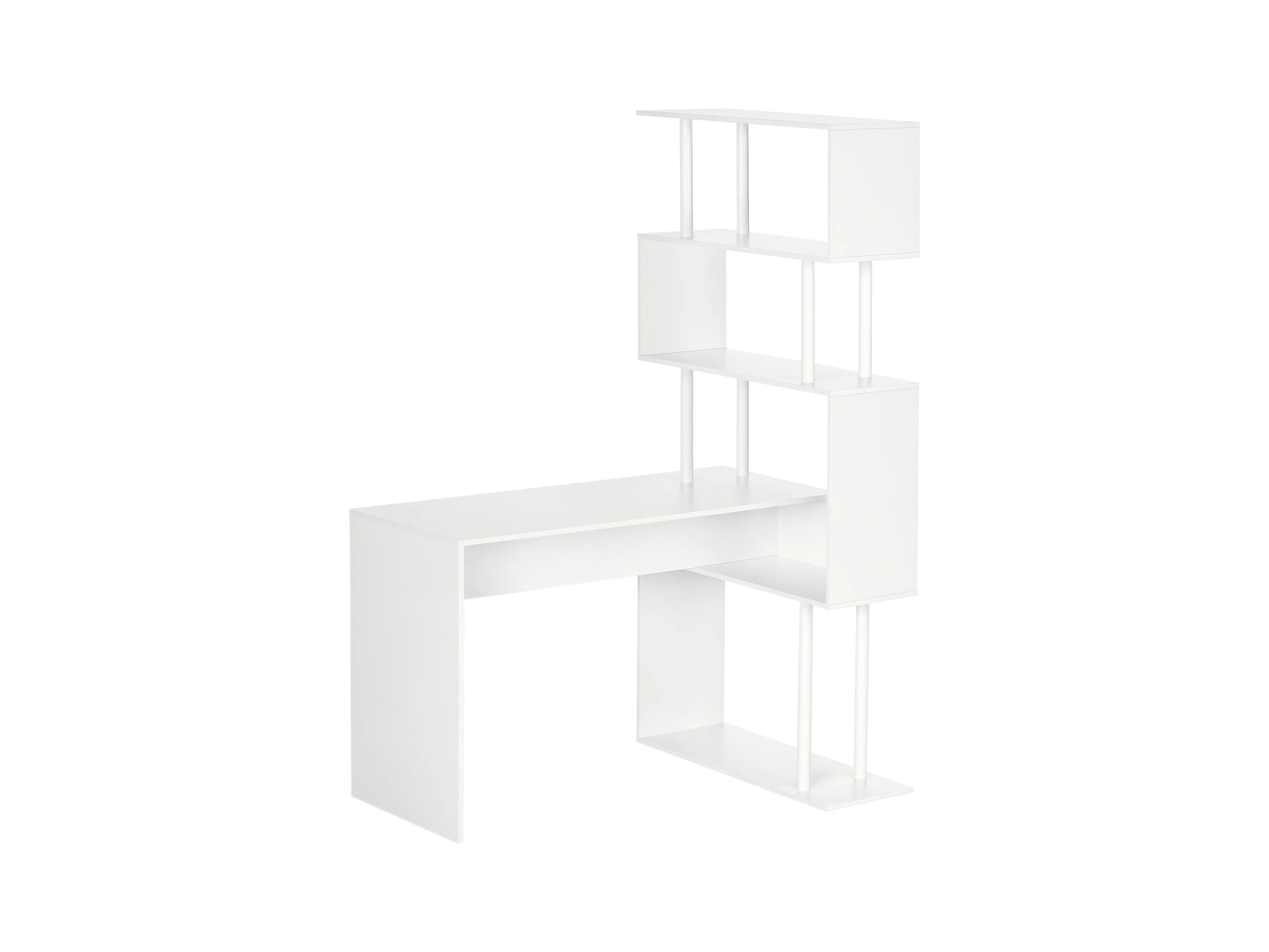 Bureau informatique design contemporain avec bibliothèque zig zag 4 étagères panneaux particules blanc
