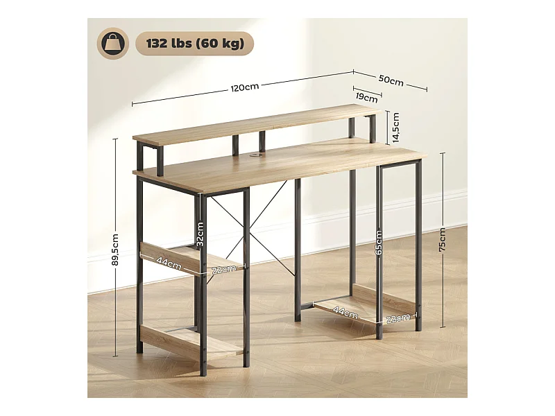 Bureau bibliothèque 2 en 1 - 3 niches - panneaux particules métal