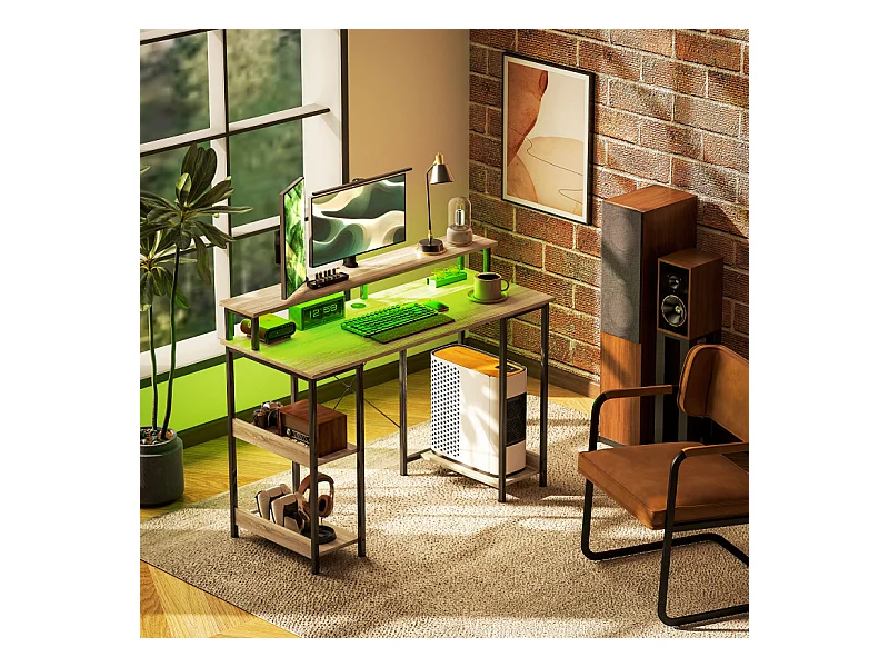 Bureau informatique design industriel LED acier noir effet bois naturel