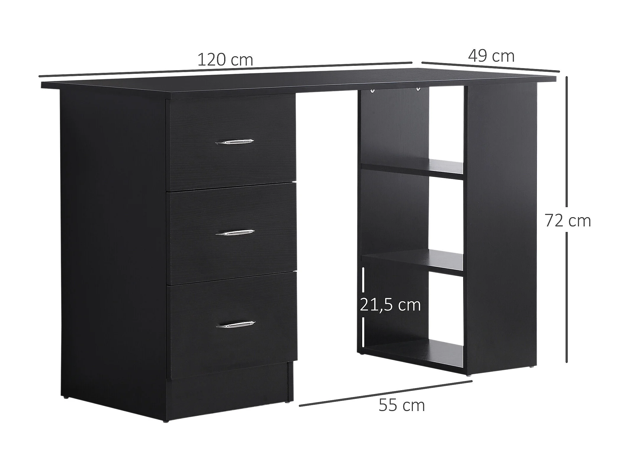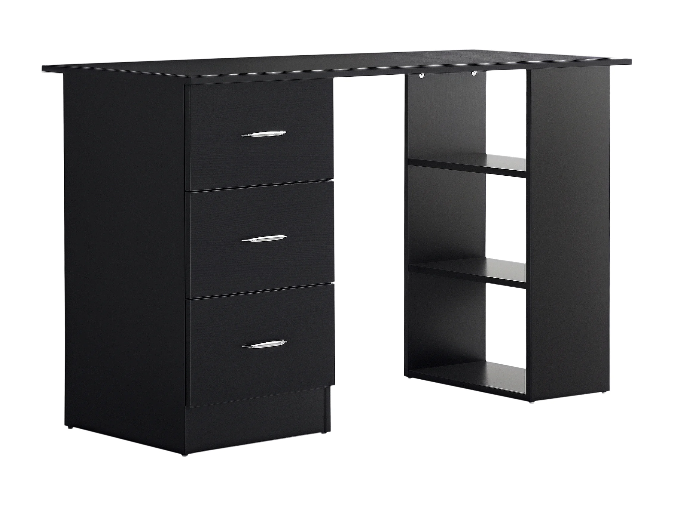 Bureau informatique meuble de bureau 3 tiroirs coulissants + 3 étagères grand plateau 120L x 49l x 72H cm MDF noir
