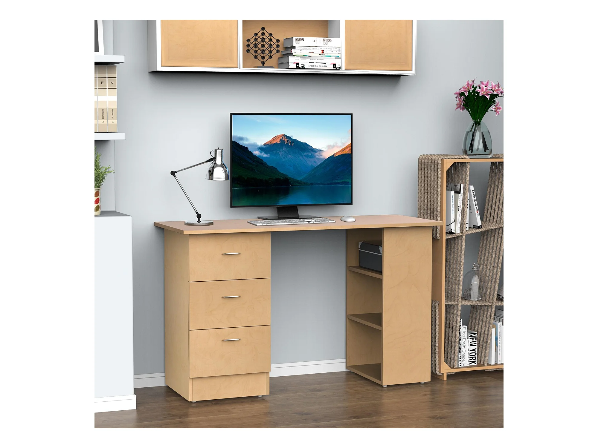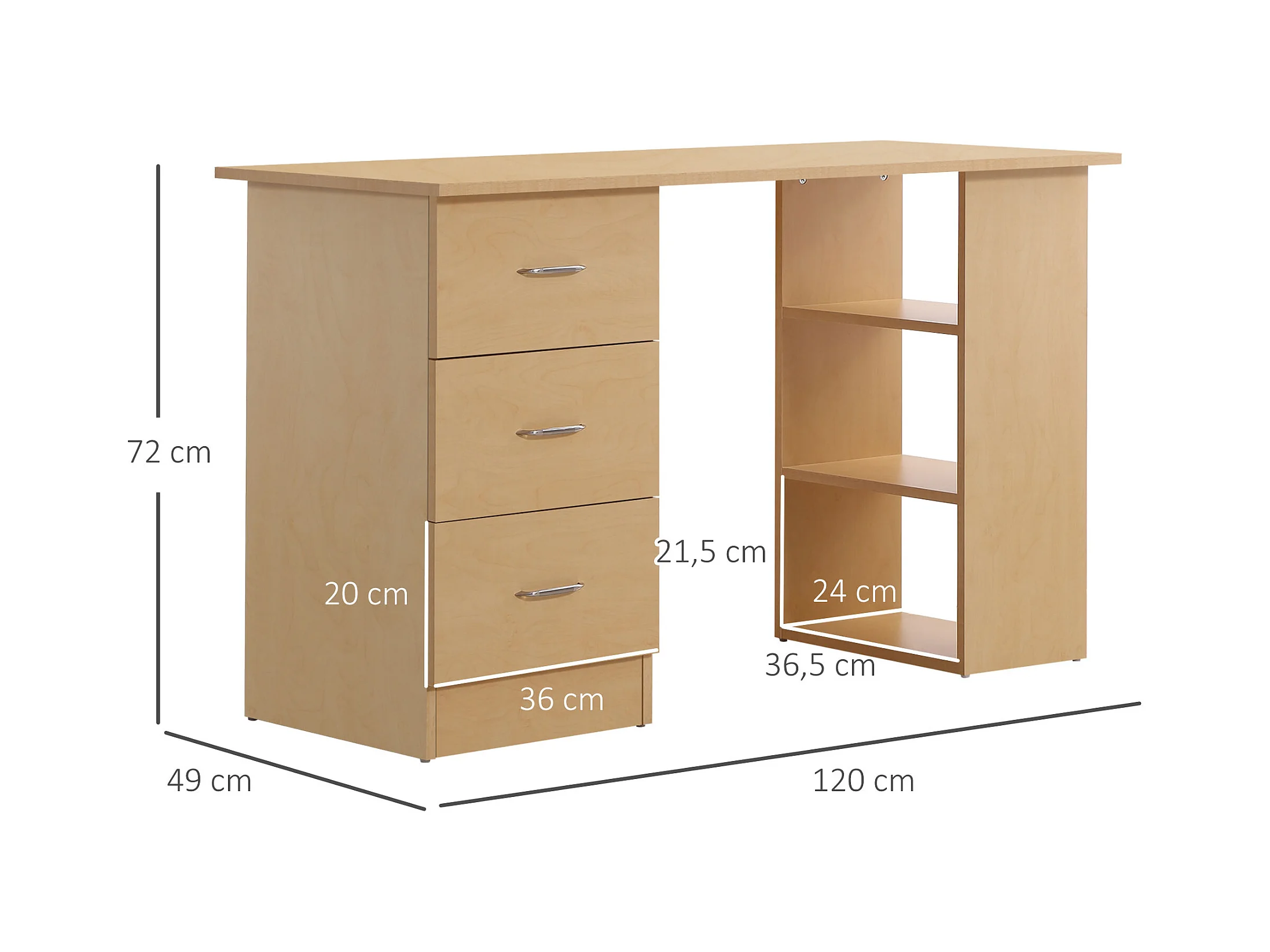 Bureau informatique table multi-fonctions 3 tiroirs 2 étagères dim. 120L x 49l x 72H cm MDF aspect bois clair