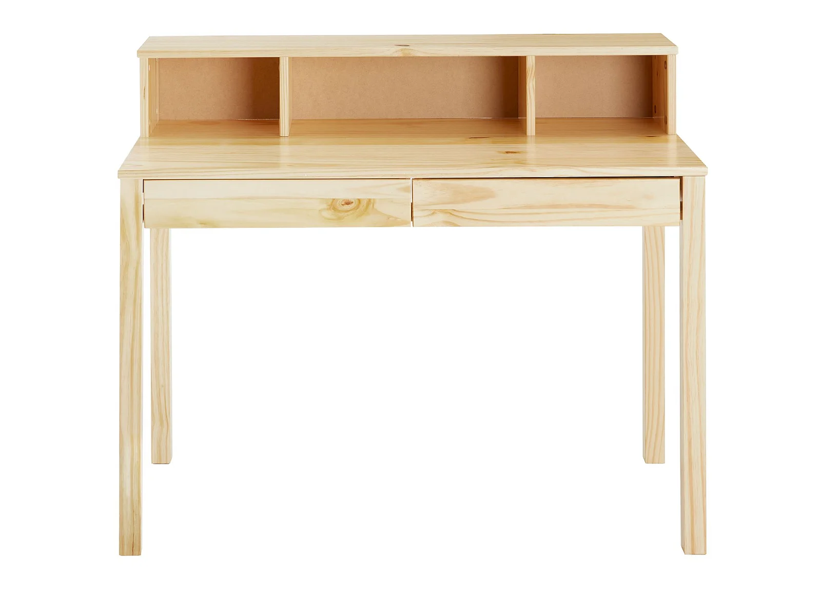 Bureau LENNOX avec rangement 2 tiroirs et 3 niches, en pin massif recouvert d'un vernis naturel