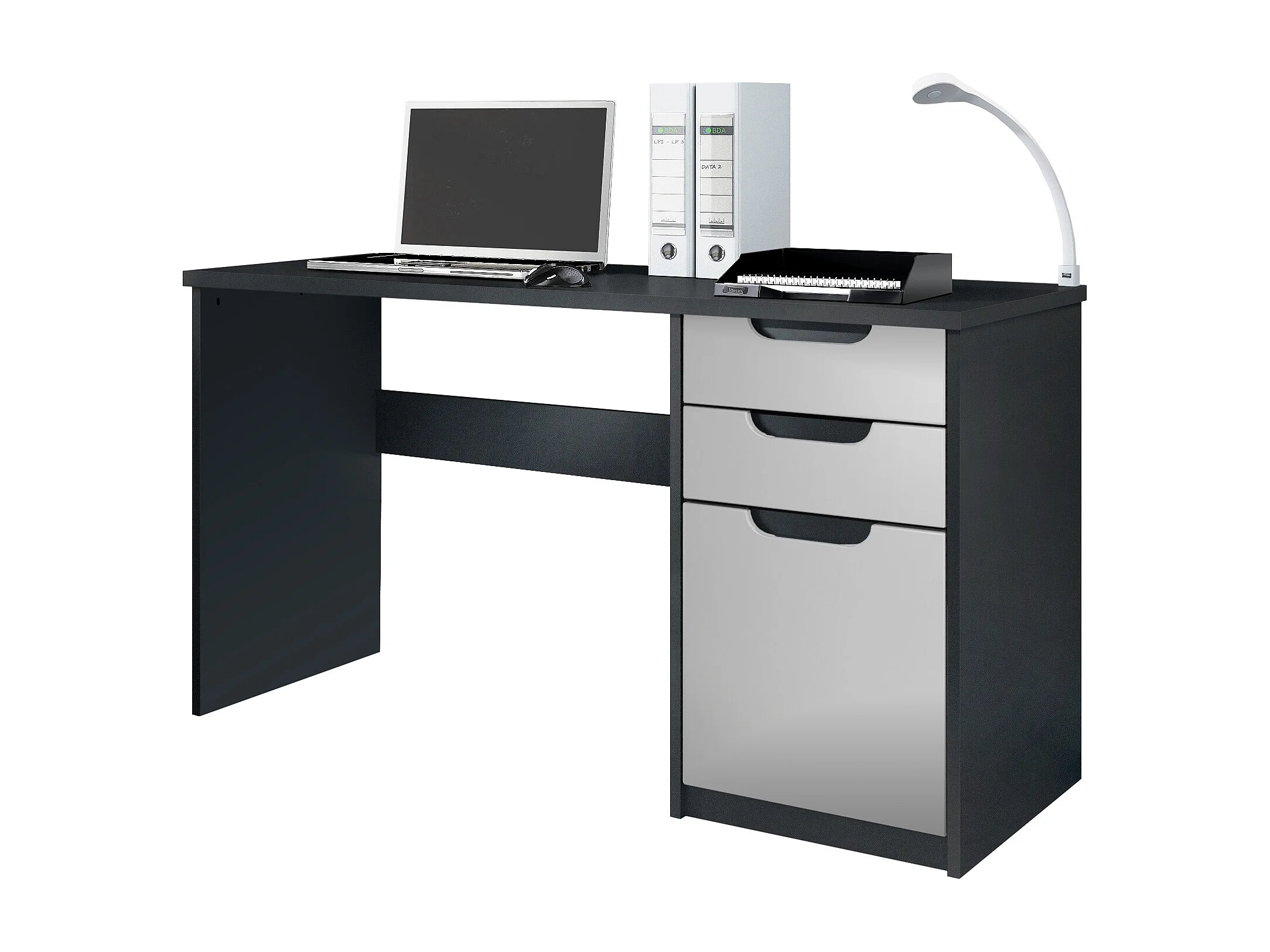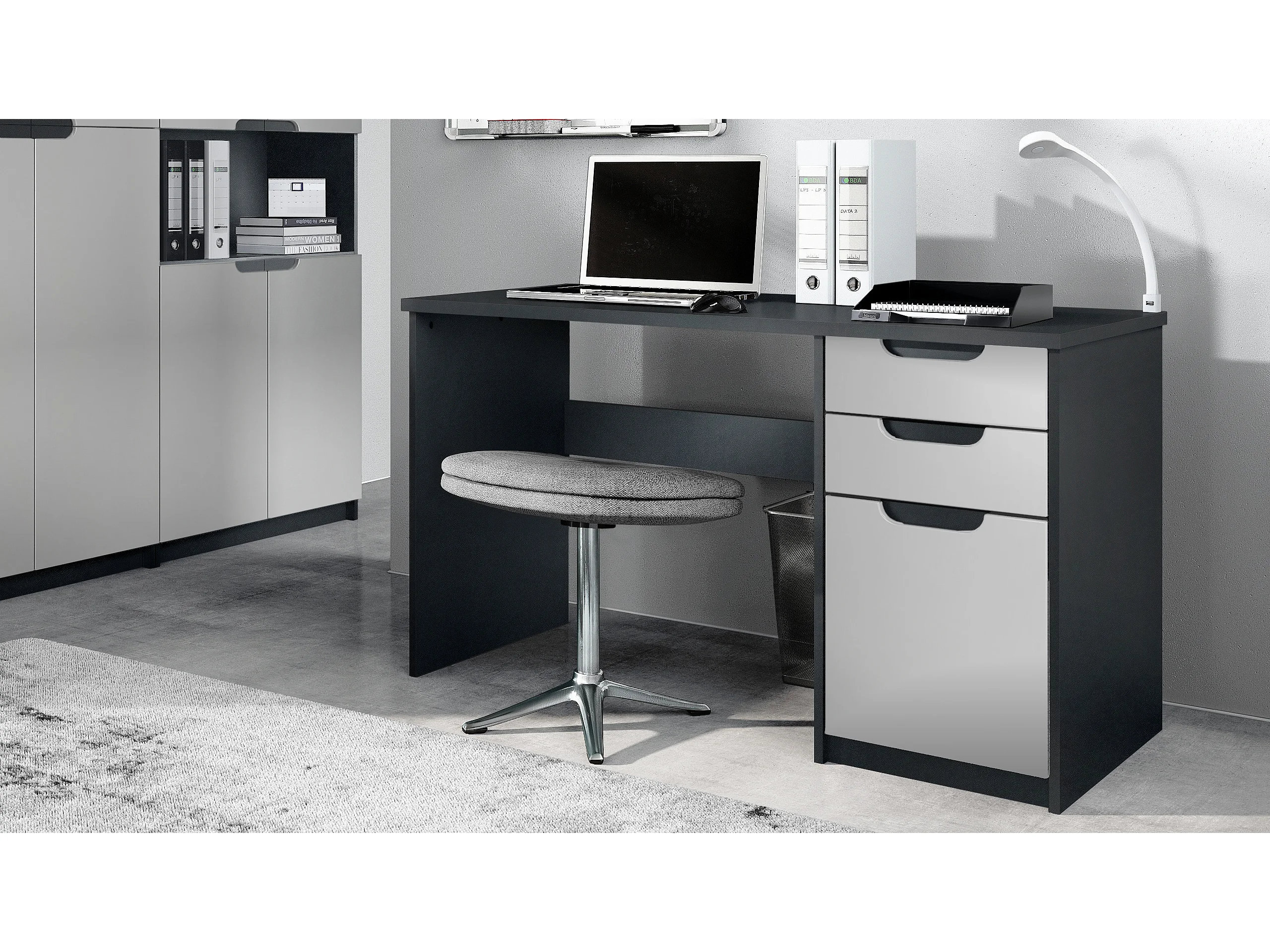 Bureau Logan, Petit bureau avec 2 tiroirs et d’une porte, noir mat/gris clair satiné mat (129 x 76 x 60 cm)