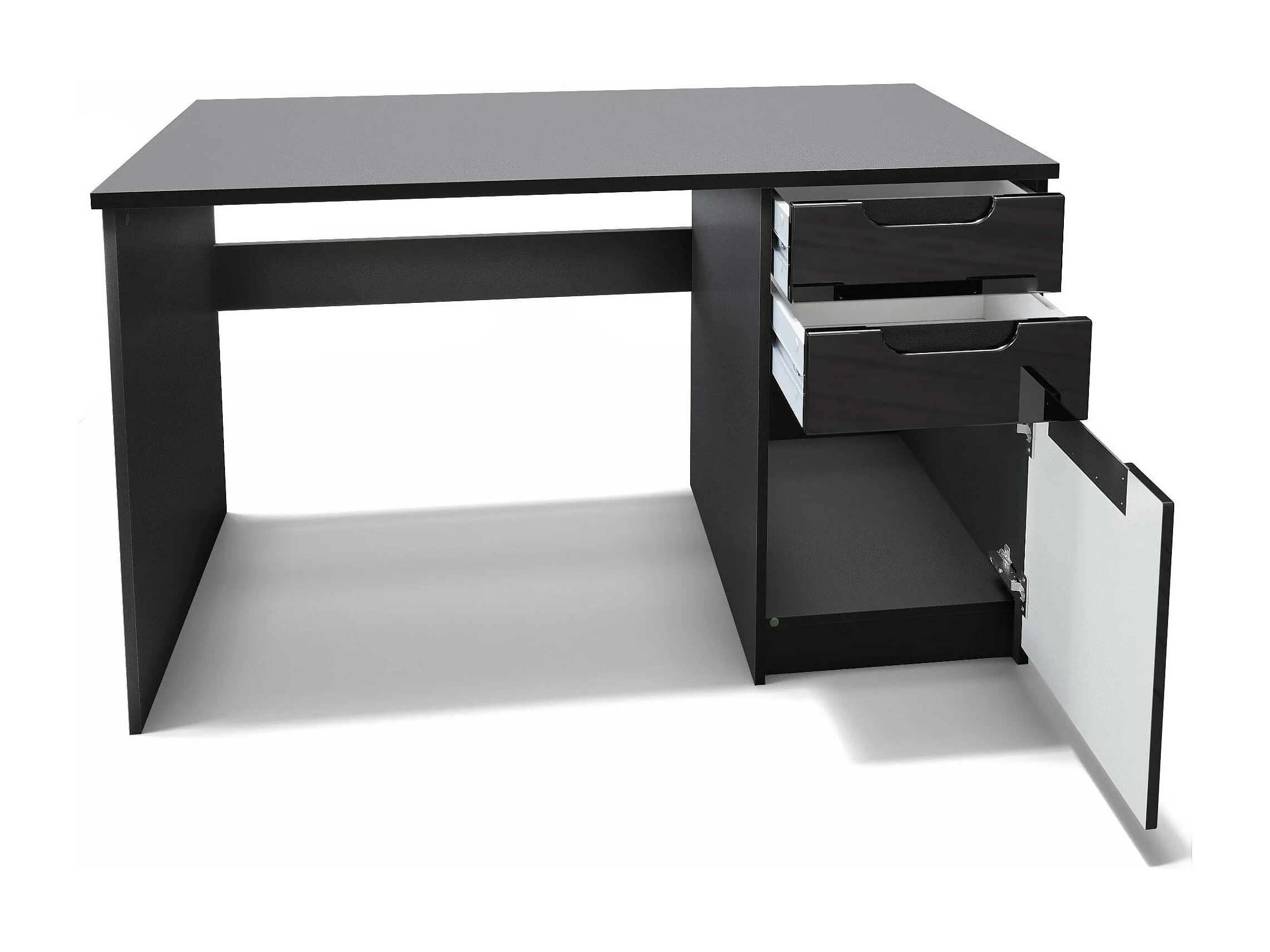 Bureau Logan, Petit bureau avec 2 tiroirs et d’une porte, noir mat/noir mat (129 x 76 x 60 cm)