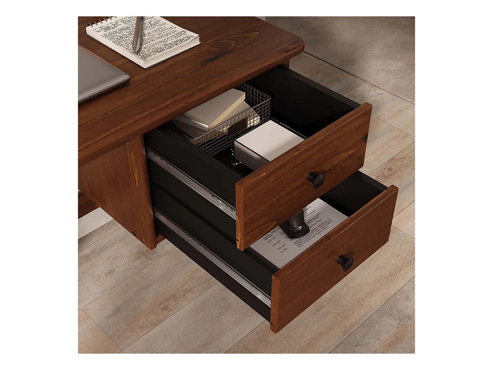 Bureau MARLO H 76 cm avec 2 Tiroirs en Bois Massif Coloris Châtaignier, Bureau Droit avec Rangement Intégré