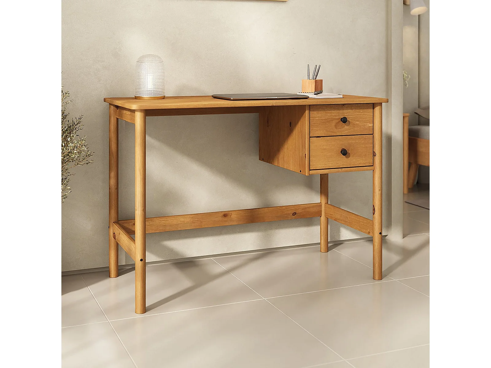 Bureau MARLO H 76 cm avec 2 Tiroirs en Bois Massif Coloris Chêne, Bureau Droit avec Rangement Intégré