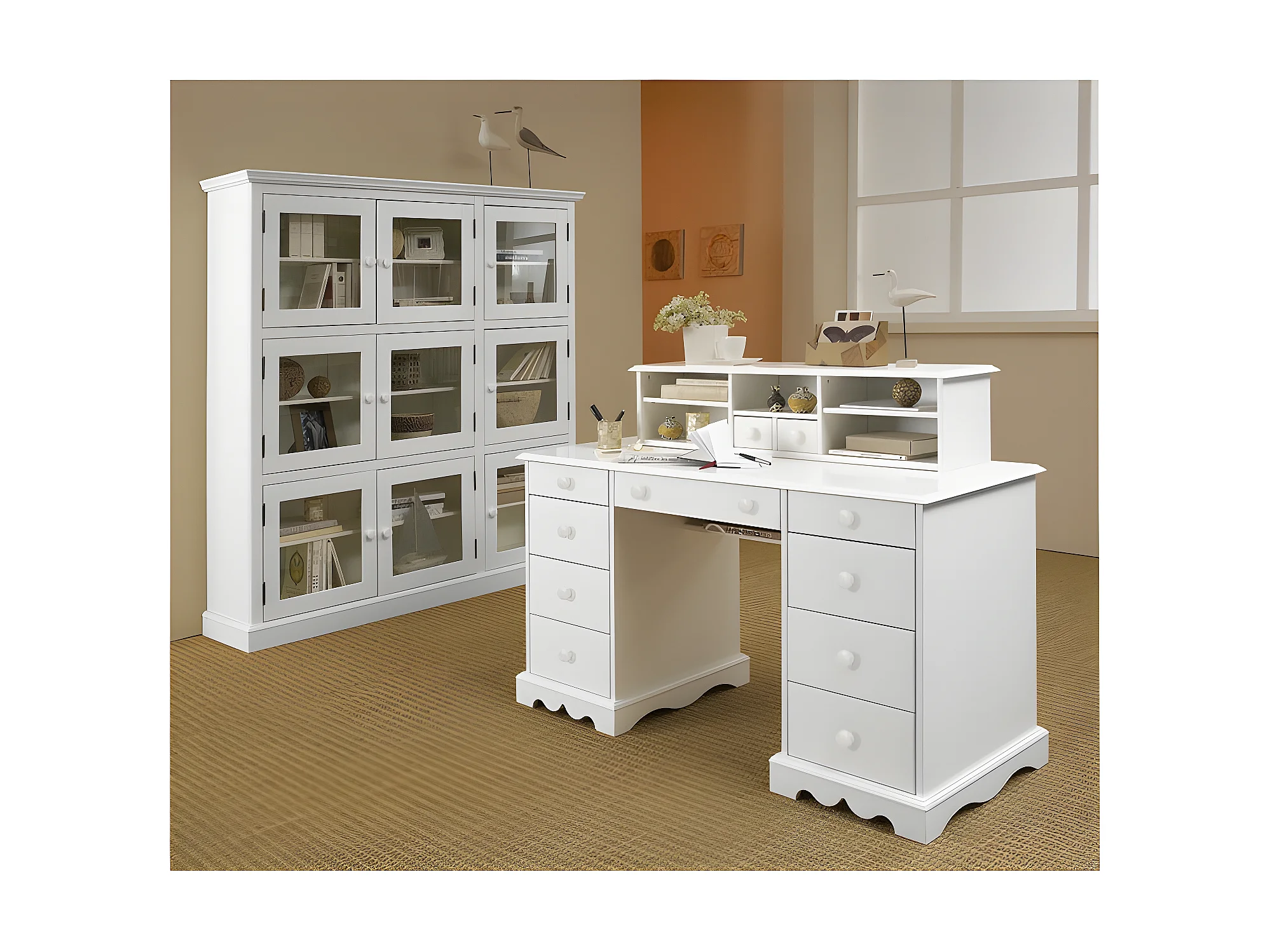 Bureau Ministre Blanc Surmeuble Style Anglais 11 Tiroirs L 137.5 H 99.7 P 58.3