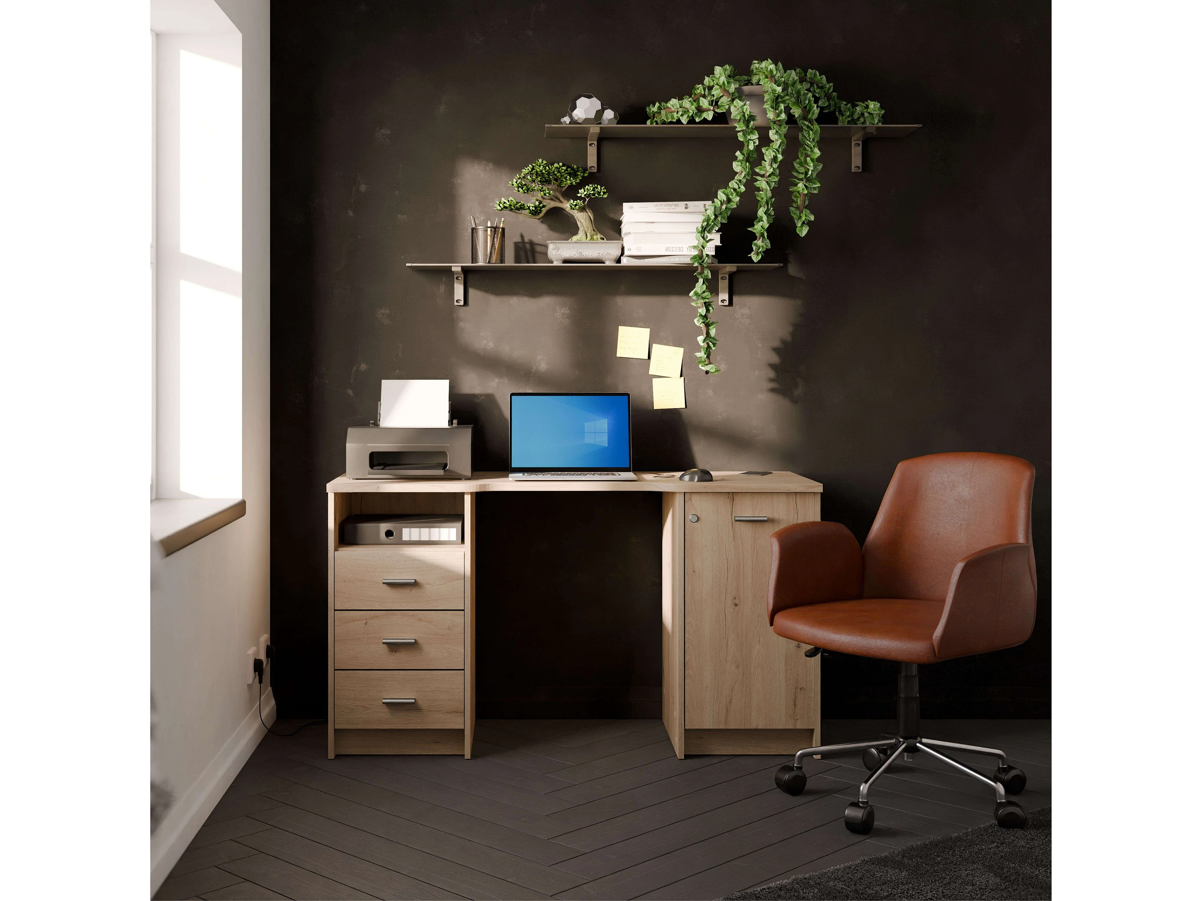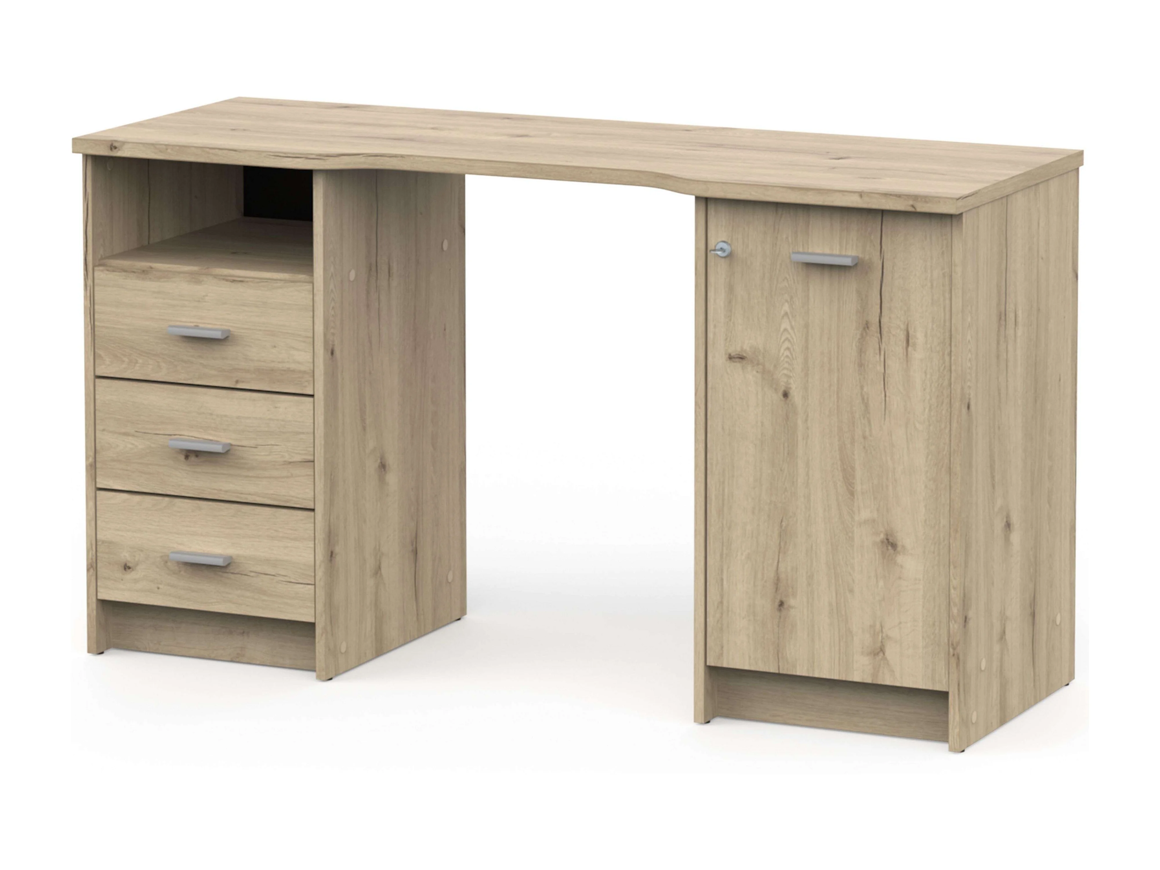 Bureau Monaco avec 3 tiroirs et 1 porte en chêne artisanal, 135 cm