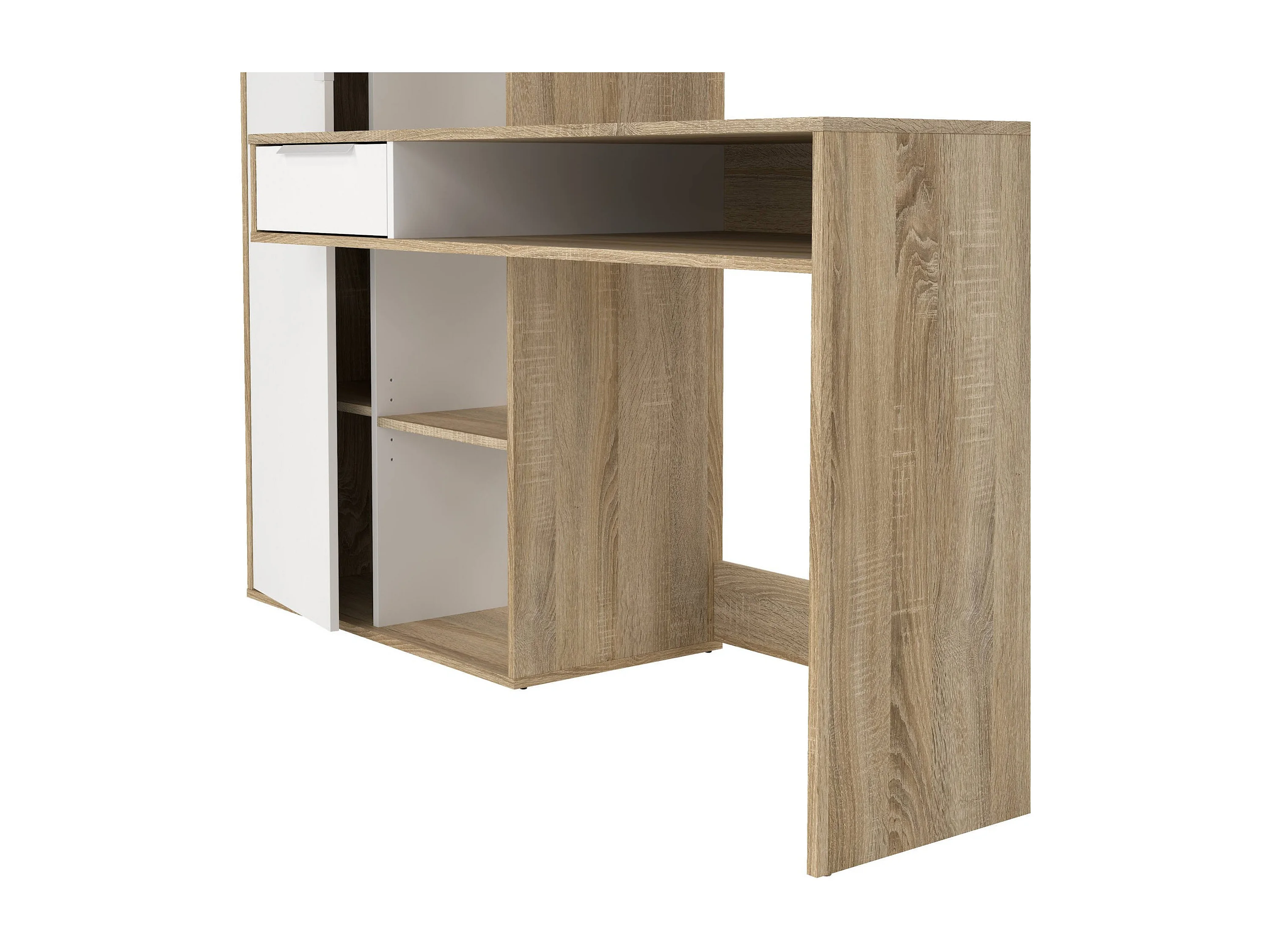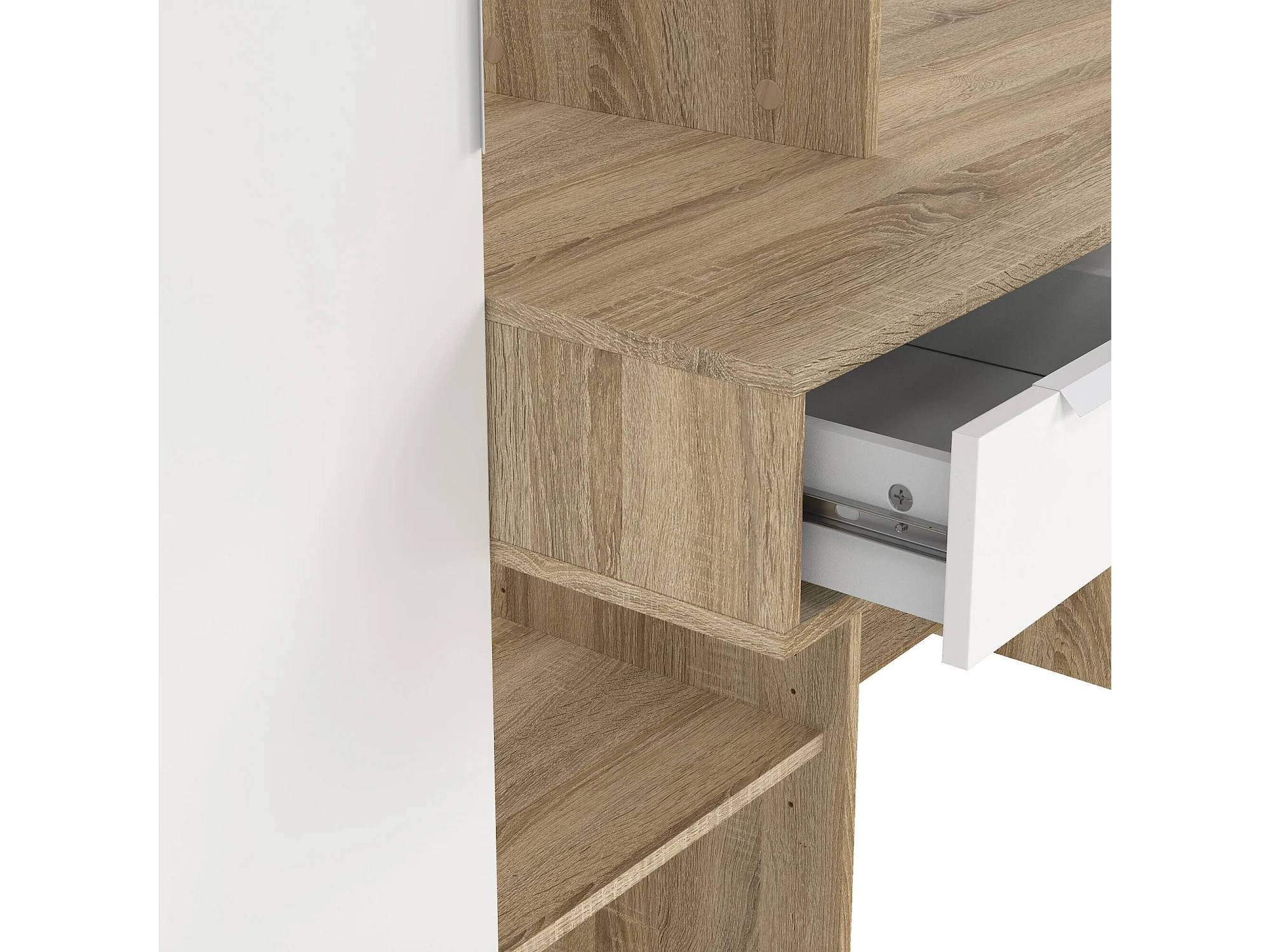 Bureau multifonction avec bibliothèque, tiroir et porte, coloris blanc et chêne, 162 x 155 x 60 cm