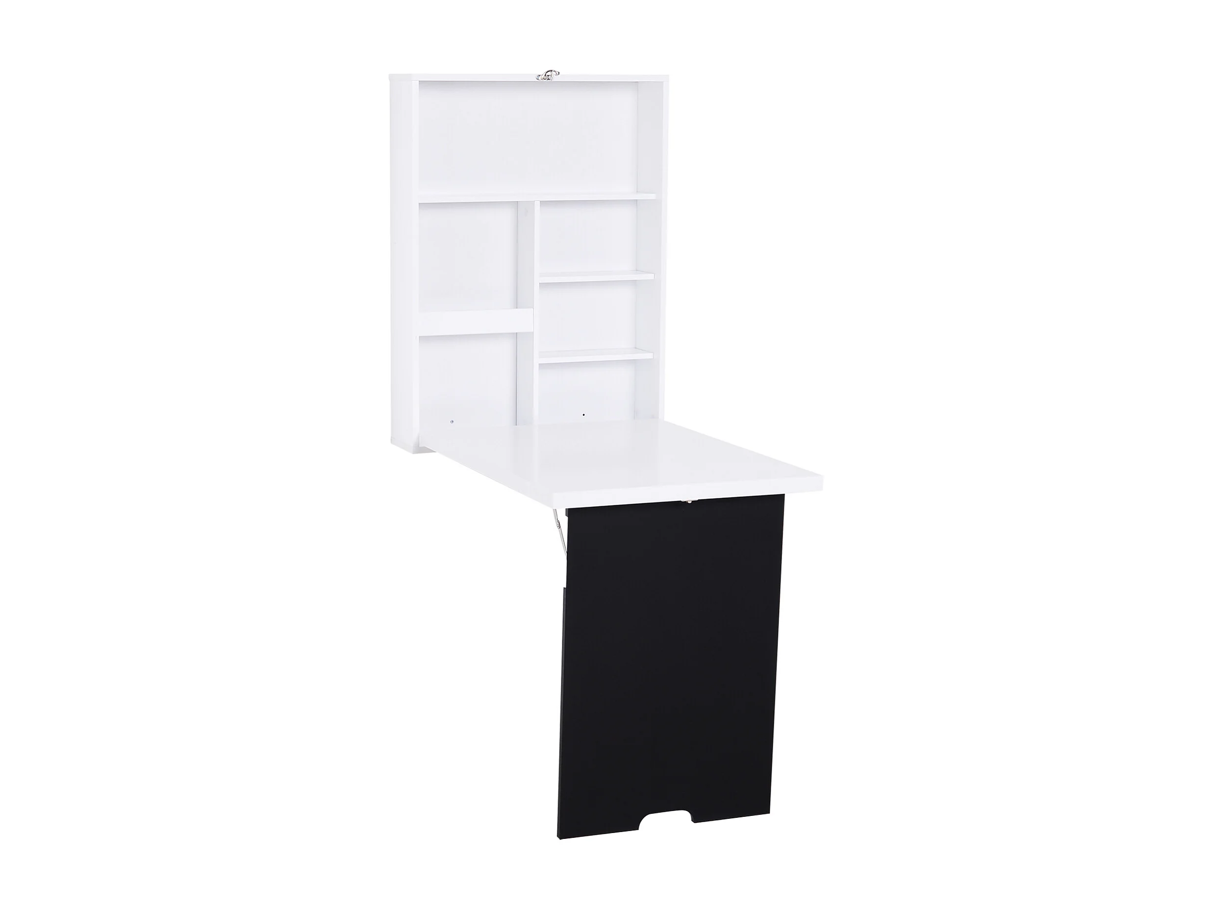 Bureau mural pliable table murale rabattable suspendue sur pied avec bibliothèque tableau à craie intégré panneaux particules blanc