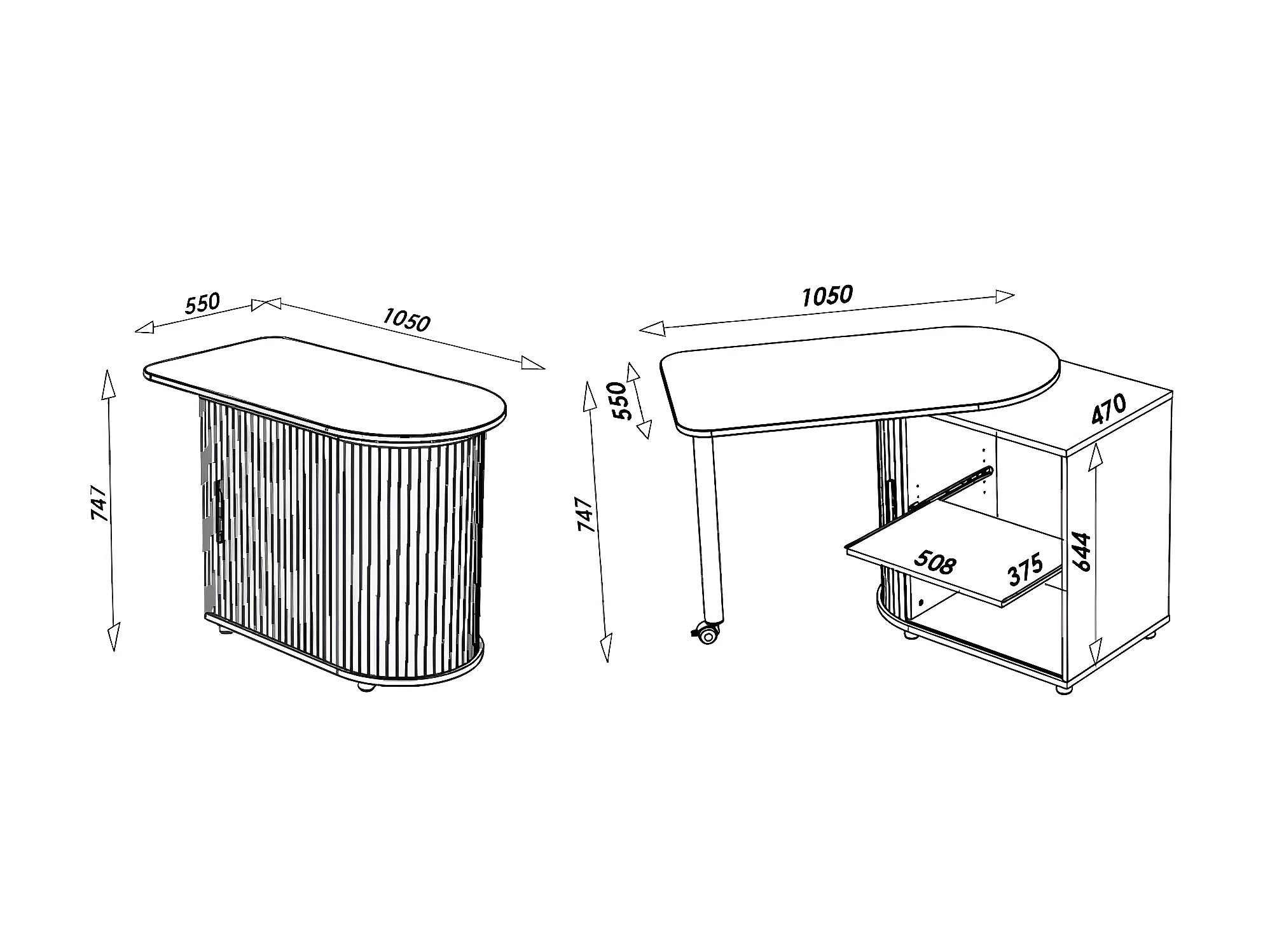 Bureau Pivotant Noir et Meuble de Rangement - Coloris: Blanc