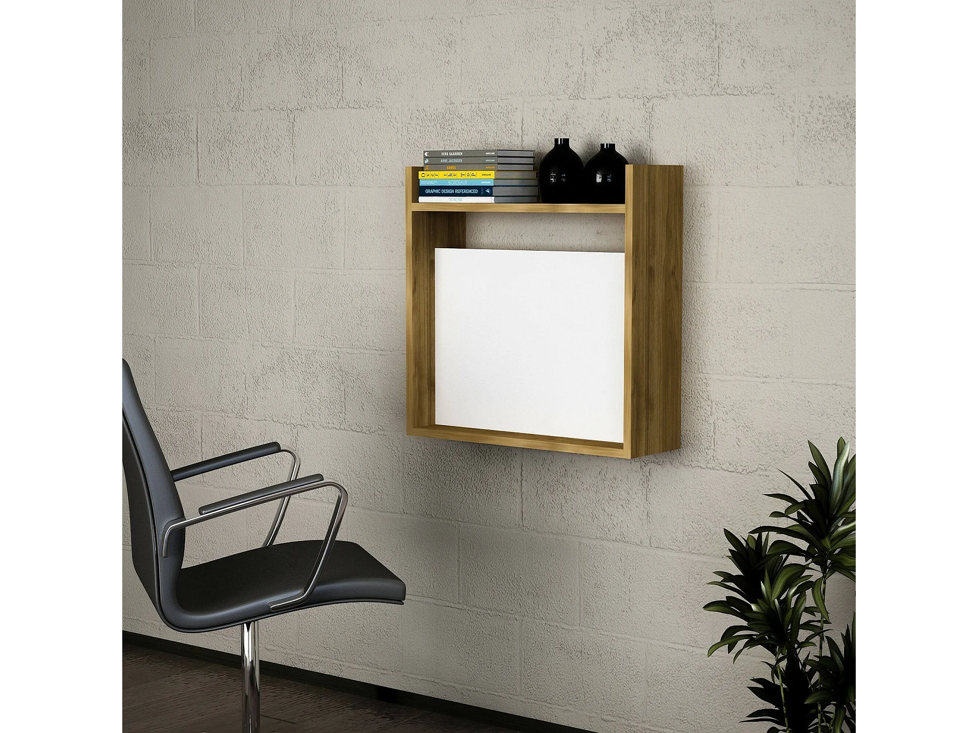 Bureau Pola, Pupitre polyvalent, Table de bureau pour PC, Plan de travail, 60x20h60 cm, Blanc et Noyer