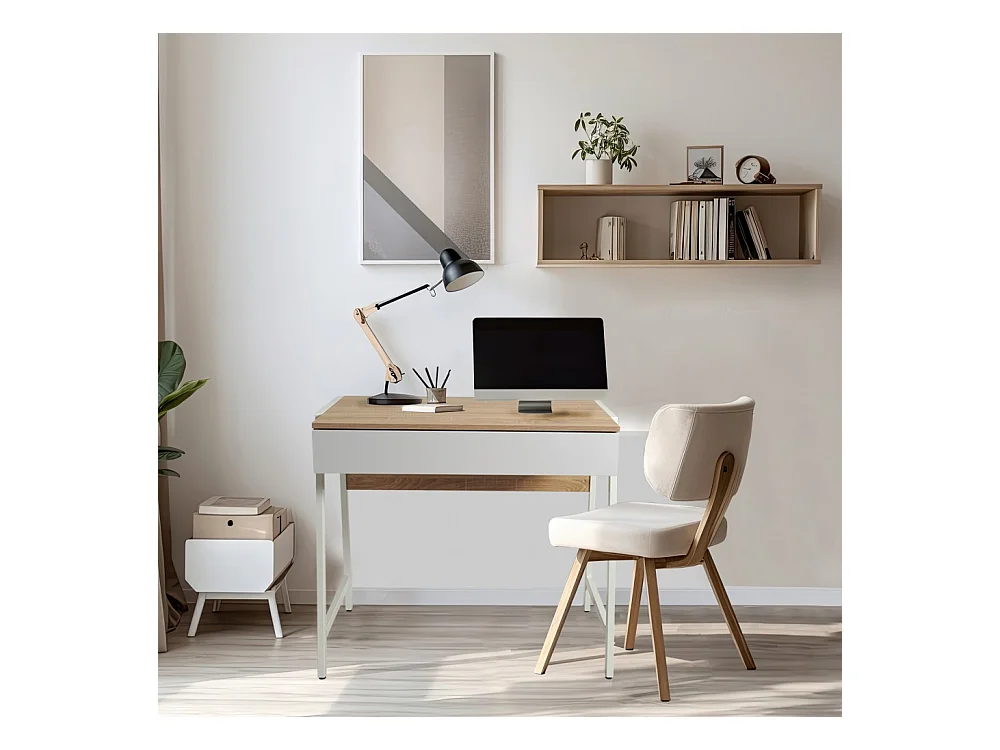Bureau POLLUX 80 x 48 cm/ Décor Chêne blanchi et métal blanc