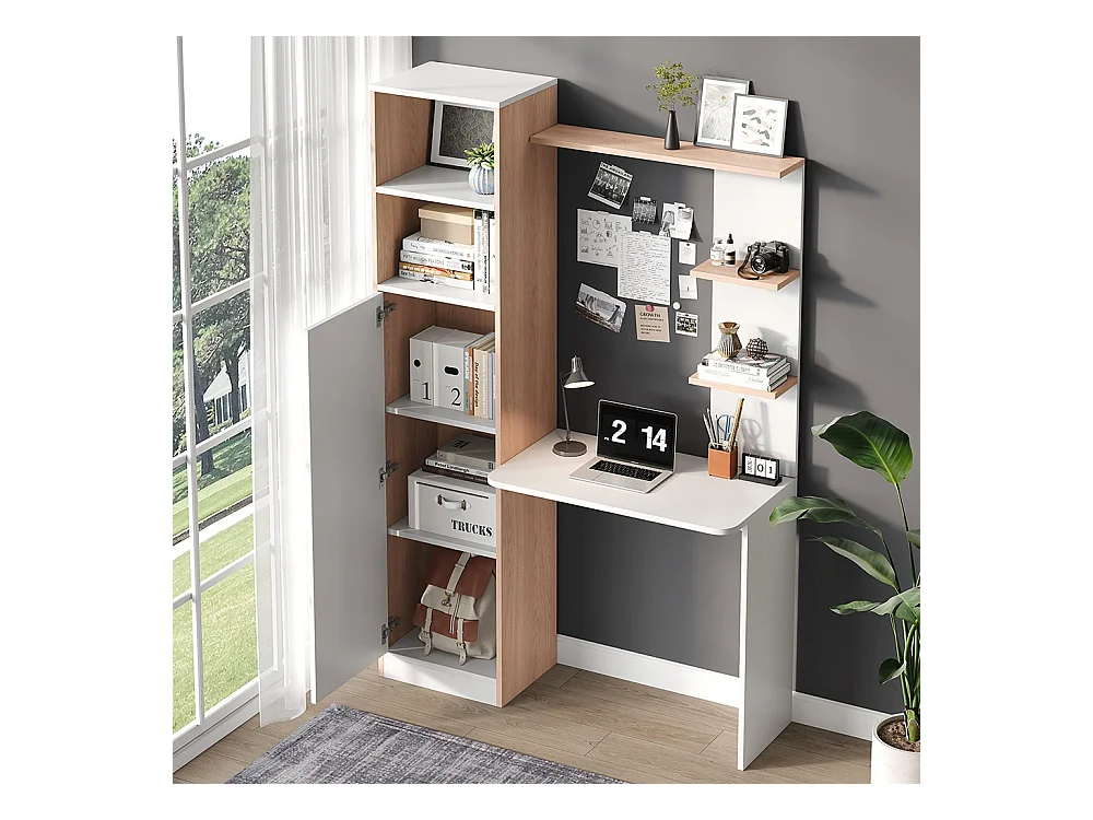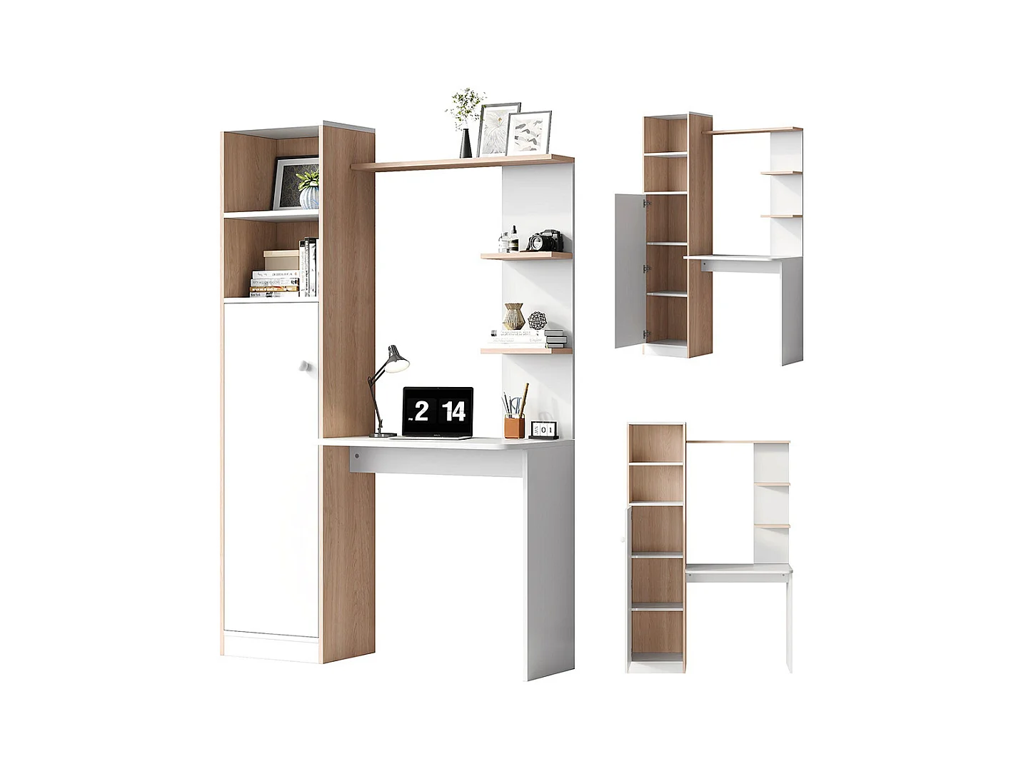 Bureau rangement blanc contraste bois massif armoire portes étagère ouverte