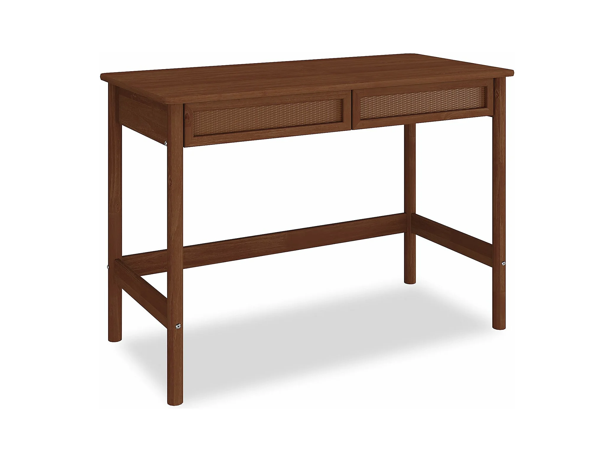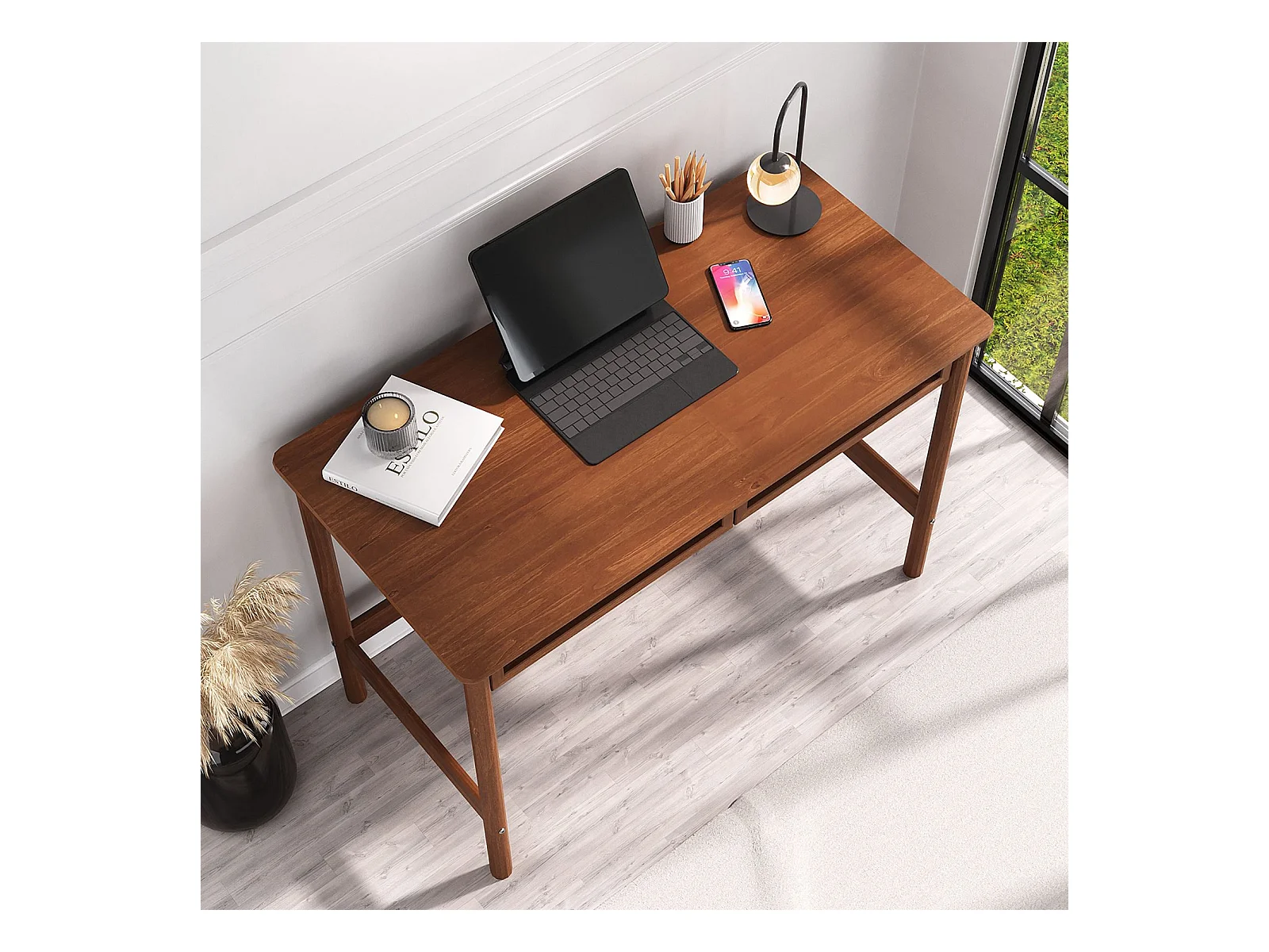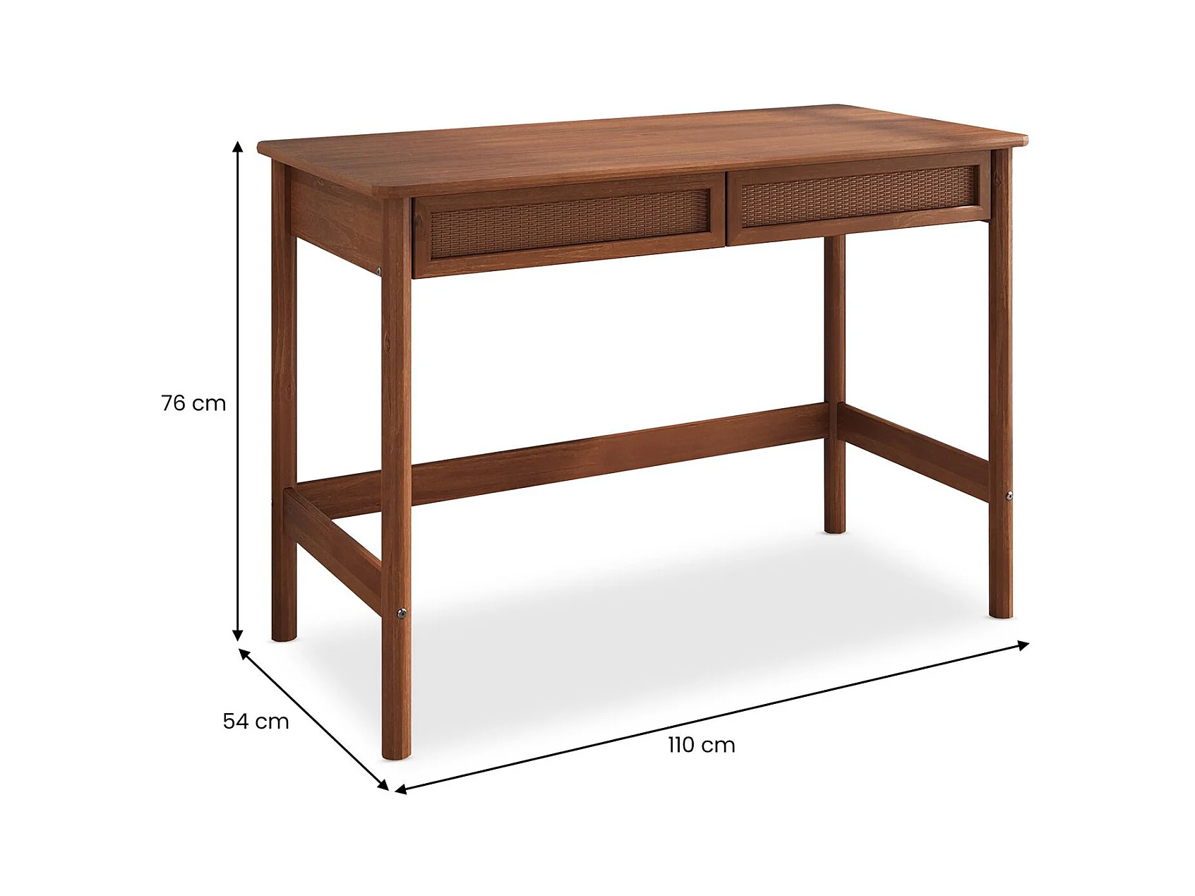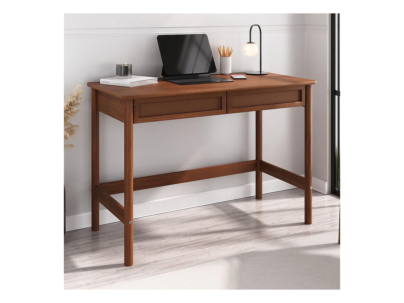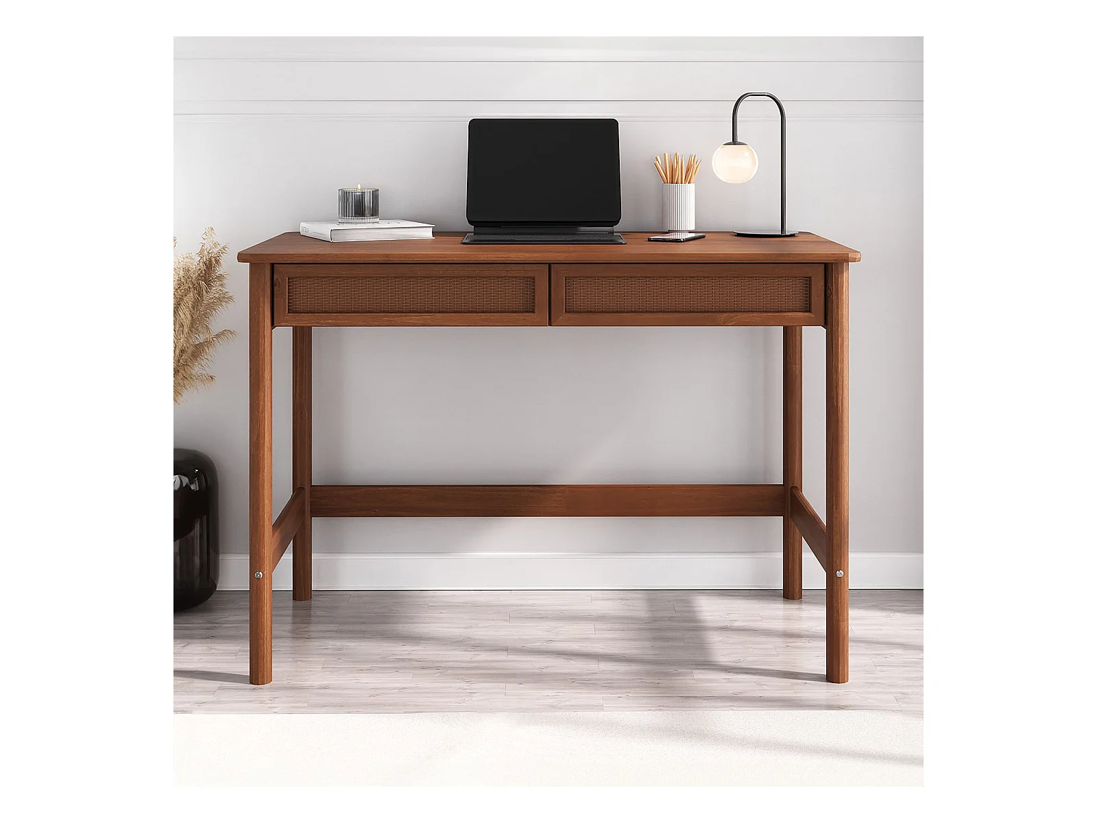 Bureau RODRIGO droit H 76 cm en bois massif coloris châtaignier avec rangement 2 tiroirs, idéal pour le télétravail