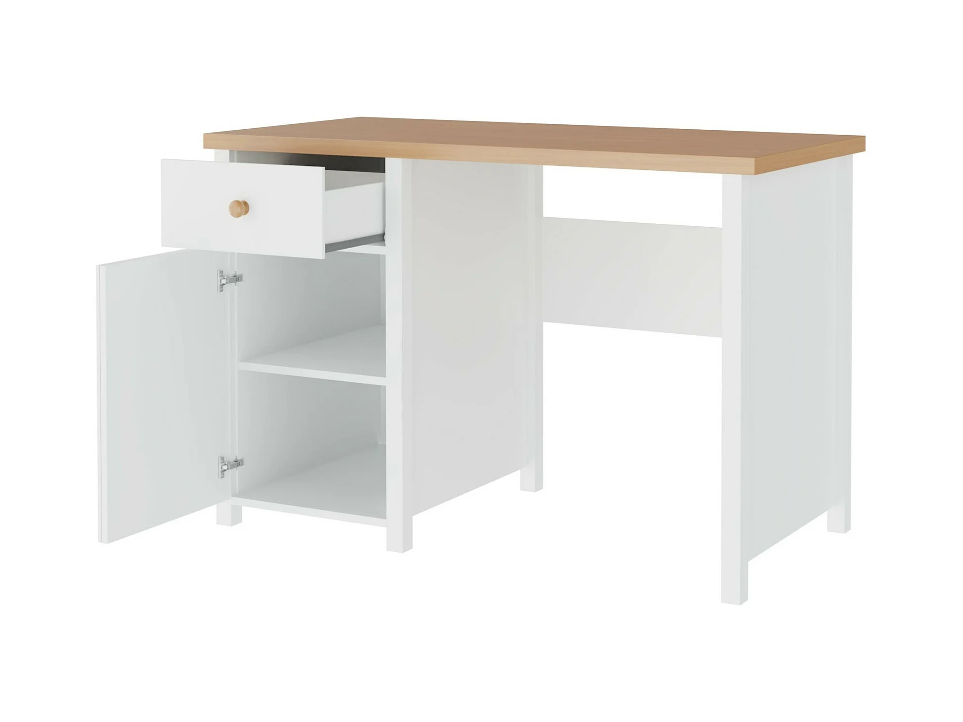 Bureau Romelbo 119, Avec des portes|Avec tiroirs, 76x110x52cm, Chêne|Blanc