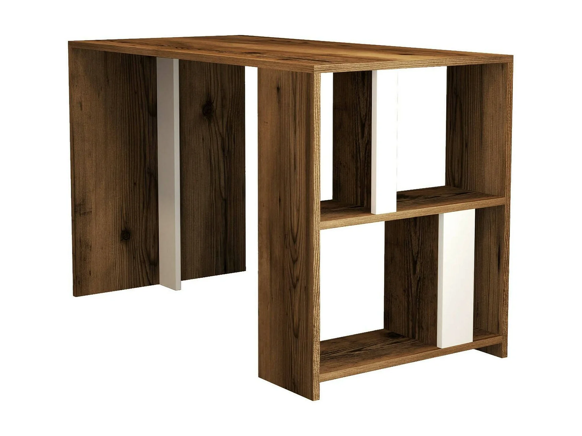 Bureau Schedar, Pupitre polyvalent, Table de bureau pour PC, Plan de travail, 120x60h75 cm, Noyer et Blanc