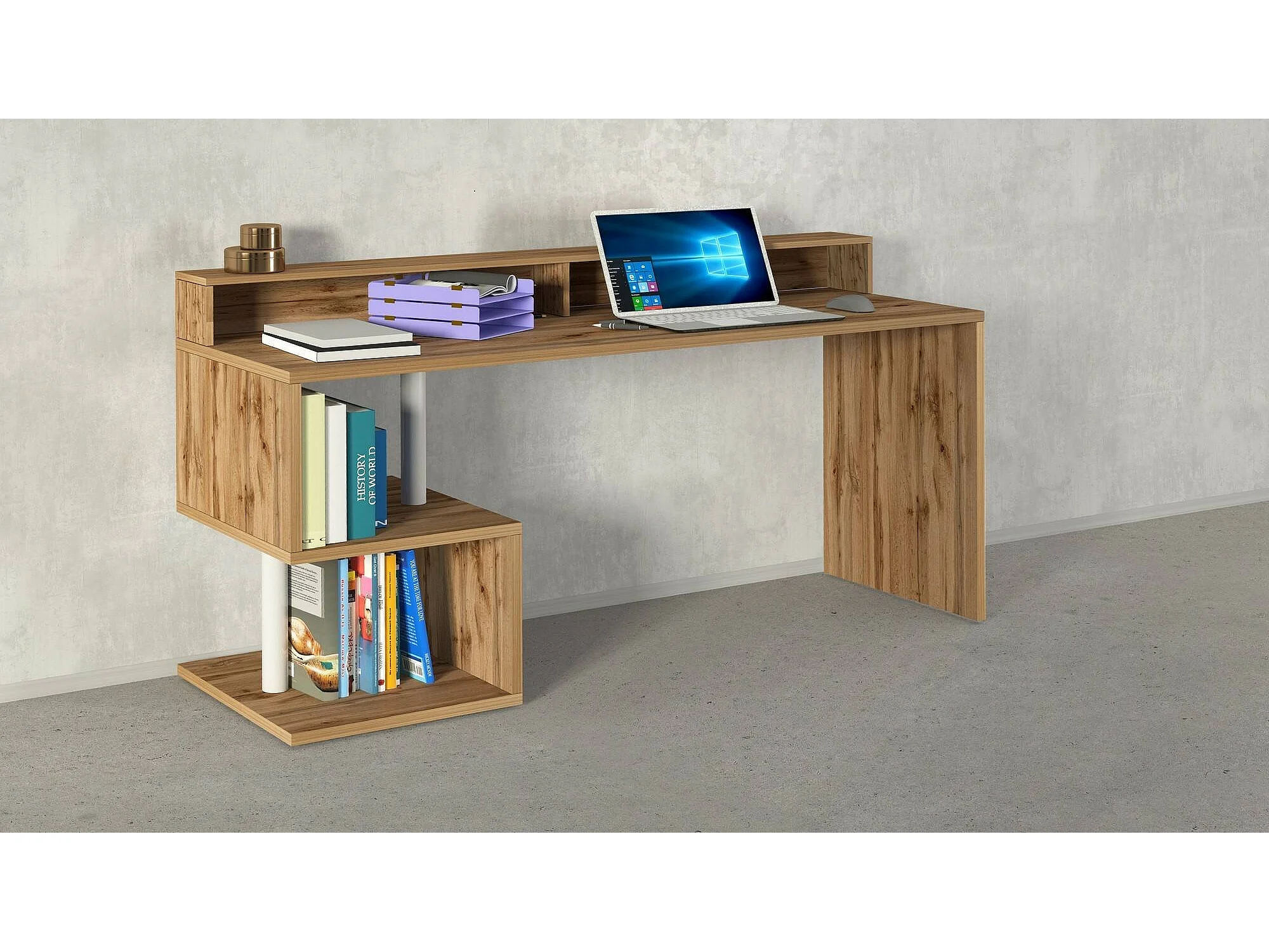 Bureau Serafino, Bureau linéaire avec étagères de rangement, Bureau polyvalent avec plateau, 180x60h93 cm, Chêne