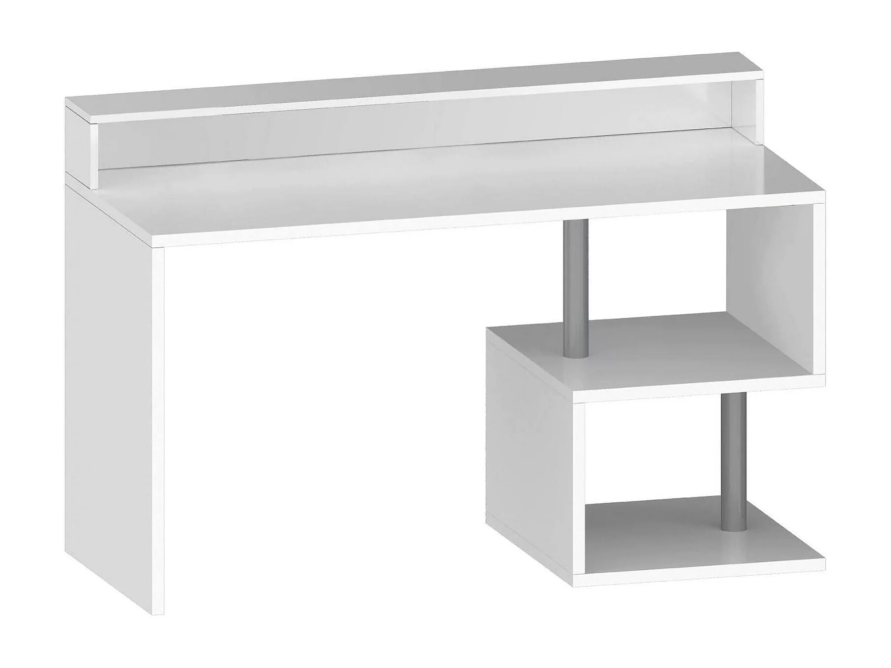 Bureau Silvestro, bureau linéaire avec étagères de rangement, bureau polyvalent avec plateau, 140x60h93 cm, Blanc